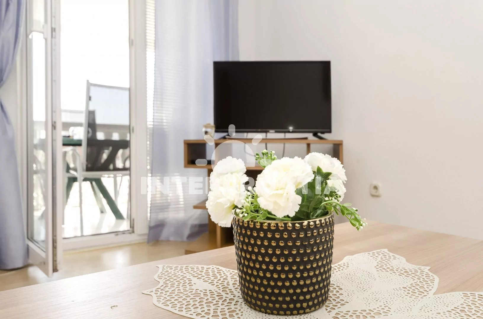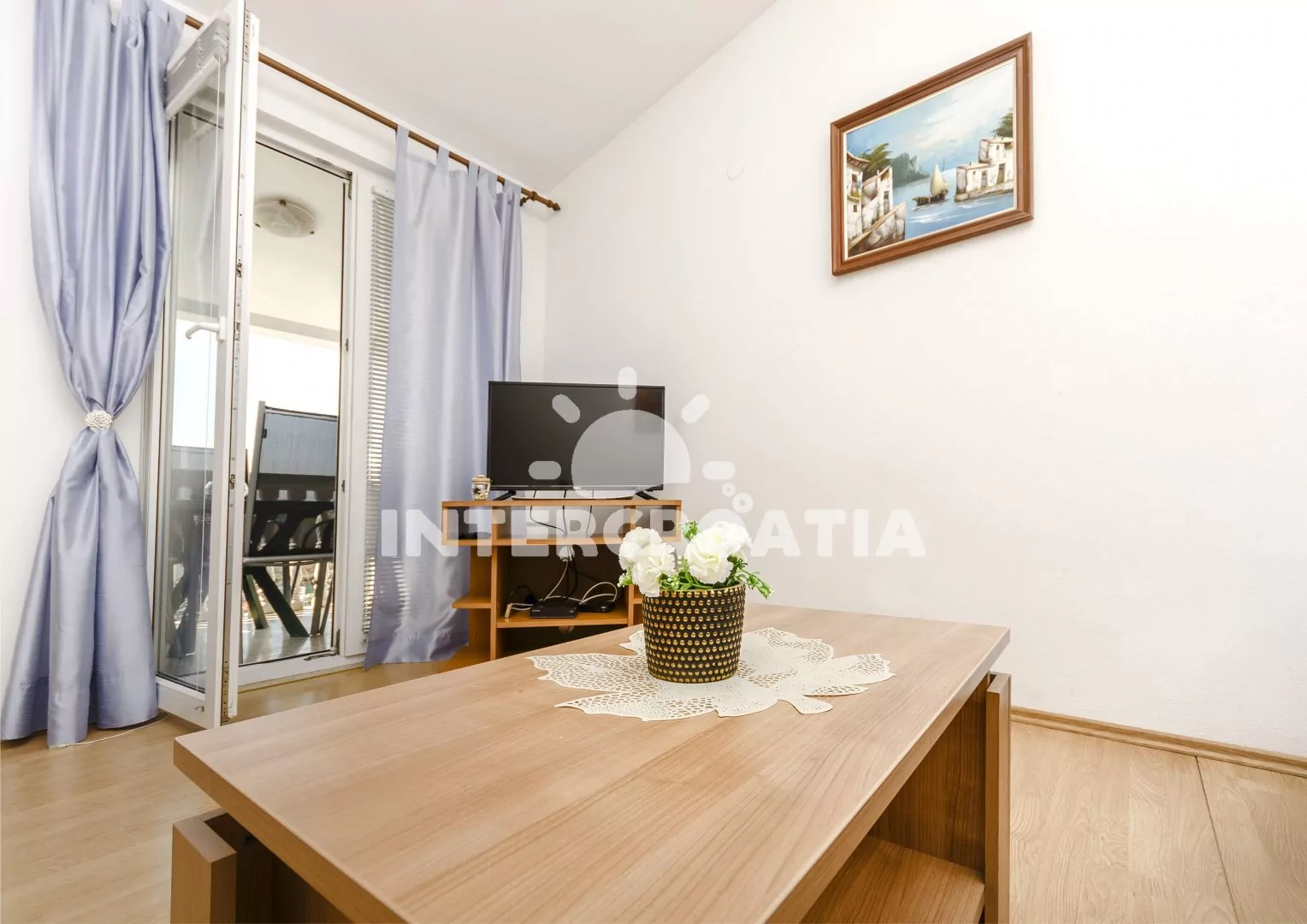 Apartmán (35 m2) s balkonem, posezením a výhledem do klidné ulice se nachází v 1. patře domu. Apartmán má 1 ložnici a je vhodný pro 2 až 4 osoby. Obývací pokoj je spojený s kuchyní. Kuchyňská linka je vybavena dvouplotýnkovým vařičem, rychlovarnou konvicí, kávovarem, nádobím a lednicí s mrazákem. Obývací pokoj s jídelním stolem pro 4 osoby, pohovkou (rozložitelná na extra lůžko pro 2 osoby), televizí se satelitním programem, klimatizací a vstupem na balkon. Ložnice s jedním dvoulůžkem. Koupelna se sprchovým koutem, umyvadlem, fénem a wc. Hostům je k dispozici parkování u objektu zdarma.