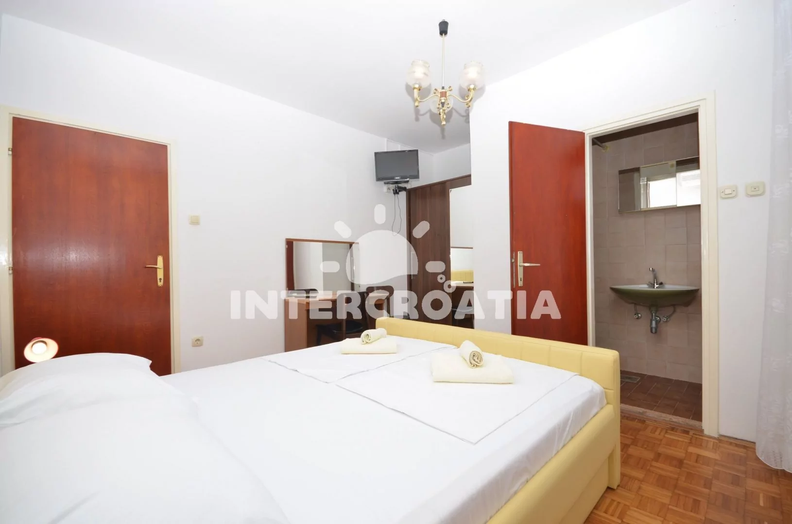 Vzdálenosti: Moře a pláž 120 m, centrum 100 m, market 50 m, restaurace 150 m, bar 200 m, lékárna 400 m, ambulance 500 m, směnárna, potápění a veřejná doprava 300 m, banka 800 m, pošta 900 m, půjčovna cyklistických kol 300 m, mini golf 250 m, tenisové kurty 2 km, čerpací stanice 1,2 km, přístav 1 km, park Plitvice 23 km, trajekt 60 km, letiště (Zadar) 60 km.