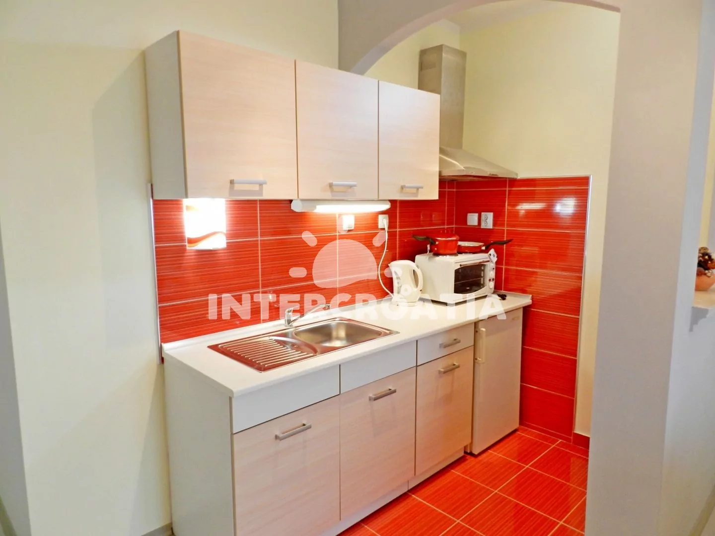 Apartmán (26 m2) typu studio se nachází v 1. patře domu a je vhodný pro 2 až 3 osoby. Obývací pokoj je spojený s kuchyní. Kuchyňská linka je vybavena malou troubou s dvouplotýnkovým vařičem, digestoří, rychlovarnou konvicí, nádobím a lednicí s mrazákem. Obývací pokoj s jídelním stolem, pohovkou (rozložitelná na extra lůžko pro 1 osobu), televizí, klimatizací a dvoulůžkem. Koupelna se sprchovým koutem, umyvadlem a wc. Hostům je k dispozici parkování u objektu zdarma.
