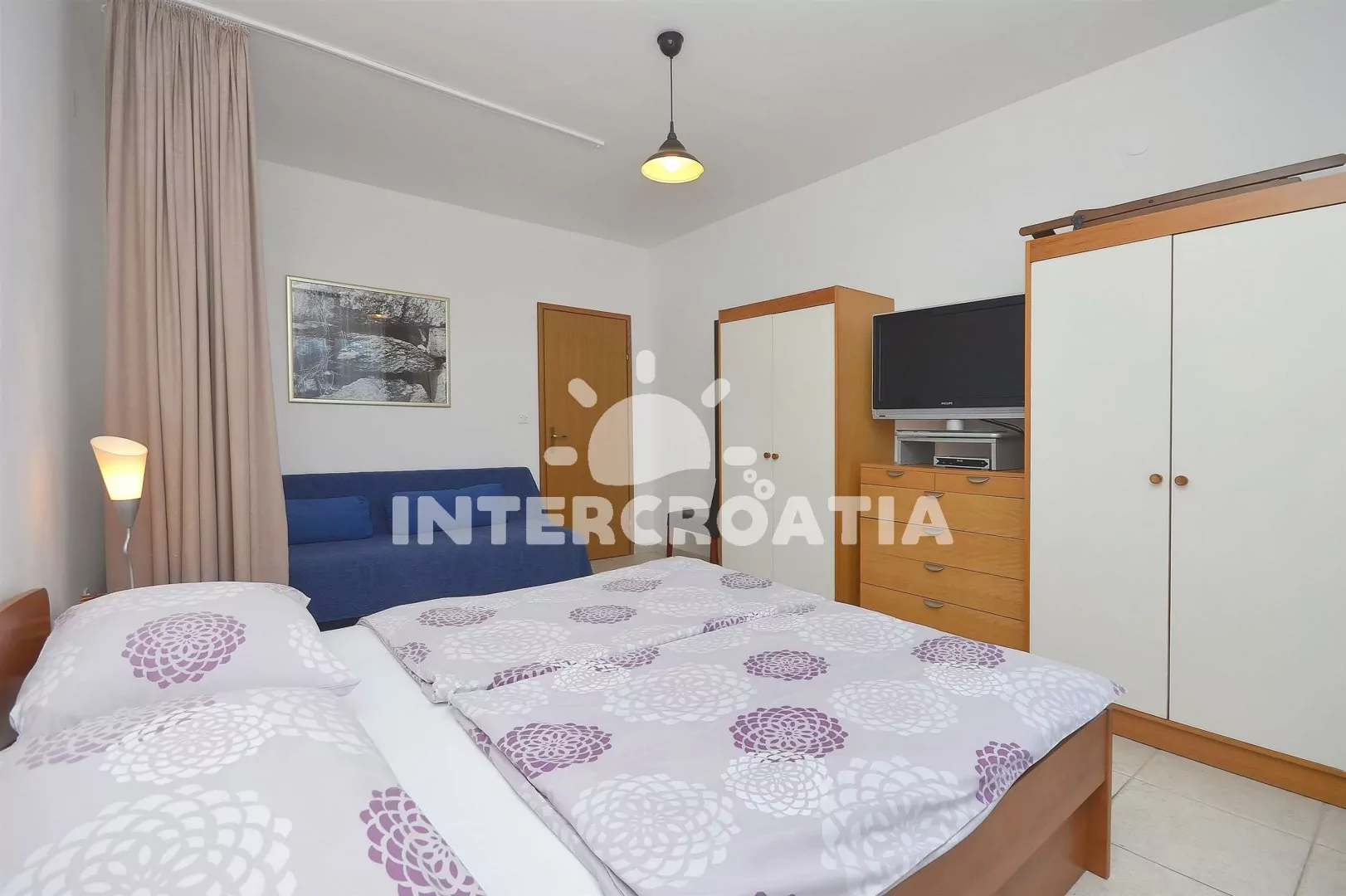 Vzdálenosti: Moře a oblázková pláž 80 m, centrum 350 m, restaurace a bar 100 m, supermarket 300 m, ambulance 900 m, lékárna 600, banka 800 m, přístav 900 m, park Plitvice 25 km, trajekt (Šibenik) 15 km, letiště (Zadar) 65 km.