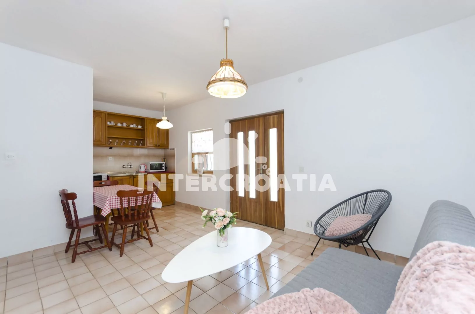 Vzdálenosti: Moře 500 m, pláž (oblázky a betonové desky) 590 m, obchod 340 m, restaurace a bar 200 m, centrum 1,2 km, lékárna 1 km, zdravotní středisko 1 km, banka 1,2 km, veřejná doprava 350 m, čerpací stanice 700 m, směnárna 500 m, půjčovna cyklistických kol 500 m, diskotéka 1,2 km, trajekt 89 km (Split), letiště 68 km (Zadar).
