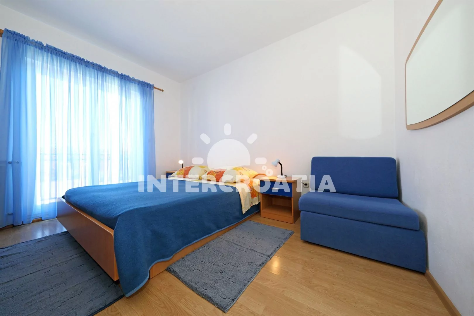 Vodice patří k ideálním prázdninovým destinacím, pokud toužíte po skvělé rekreaci u moře a poznávacích výletech. Pěšky přijdete za 5 minut od apartmánu k moři a písečné-oblázkové pláži Plava. Pláž nabízí bohaté turistické zázemí pro příjemnou rodinou dovolenou. Do křišťálově čistého moře vede pozvolný přístup, a vy si můžete užívat bezstarostné koupání a šnorchlování. Děti nejvíce zaujmou zábavné vodní atrakce. Podél celé pláže najdete různé obchůdky, stánky, rychlé občerstvení a příjemné restaurace, které lákají k posezení. Pobřeží lemují stromy, u kterých najdete krásný stín. Navštívit můžete také sousední oblázkovou pláž Malo Vitra, kterou částečně tvoří betonové plochy. Než se vydáte do Šibeniku plného cenných památek, v centru Vodice si prohlédněte kostel sv. Kříže, obrannou věž Čarićev z 16. století a kostel Nalezení sv. Kříže. Během letní sezóny máte jedinečnou možnost zažít rozmanitý doprovodný program při slavnosti Vodička fešta, Vodických hrách a slavnosti Panny Marie Karmelské. Nejenom rodinám s dětmi doporučujeme navštívit Akvárium a muzeum námořní tradice. Příznivci cyklistiky a pěší turistiky si naplánují výlet na vrchol Okit, odkud krásně uvidí na blízké ostrovy a hory. Trogir patří k dalším městům, kam stojí za to vyrazit. Všechny turisty okouzlí nádherné památky jako jsou obranná věž sv. Marka, kostel sv. Jana Křtitele, katedrála sv. Vavřince, pevnost Kamerlengo, kostel sv. Barbory, palác Lucićů, Mořská a Pevninská brána. Celodenní výlety, kde vás okouzlí přírodní krásy si naplánujte do Národního parku Krka a Přírodního parku Vranské jezero. Ruch metropole, lidové slavnosti, hudební festivaly a gastronomické události si nenechte ujít v Šibeniku.