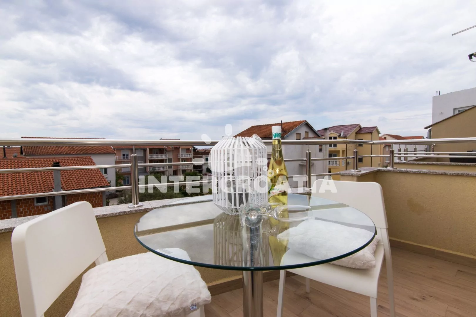 Apartmán (60 m2) s terasou a venkovním posezením se nachází ve 2. patře domu. Apartmán má 1 ložnici a je vhodný pro 2 až 4 osoby. Obývací pokoj je spojený s kuchyní. Kuchyňská linka je vybavena sklokeramickou varnou deskou, digestoří, vestavěnou troubou, myčkou na nádobí, rychlovarnou konvicí, kávovarem, nádobím a lednicí s mrazákem. Obývací pokoj s jídelním stolem, pohovkou (rozložitelná na extra lůžko pro 2 osoby), televizí se satelitním programem, klimatizací a vstupem na terasu. Ložnice s dvoulůžkem a sejfem. Koupelna se sprchovým koutem, umyvadlem, fénem a wc. Hostům je k dispozici parkování u objektu zdarma.