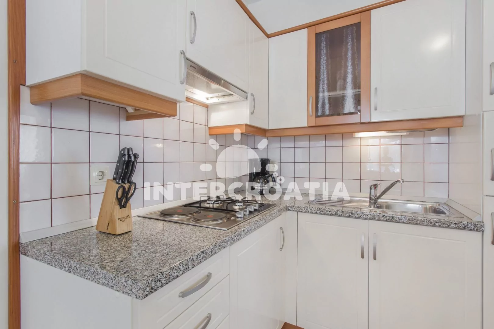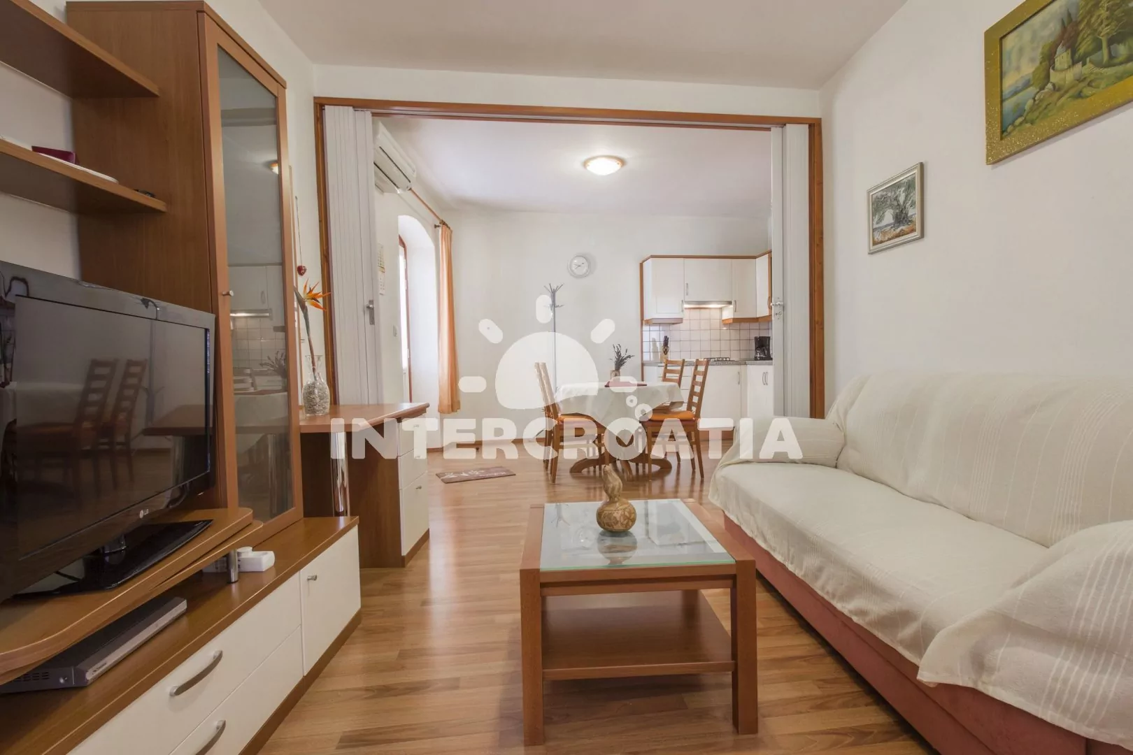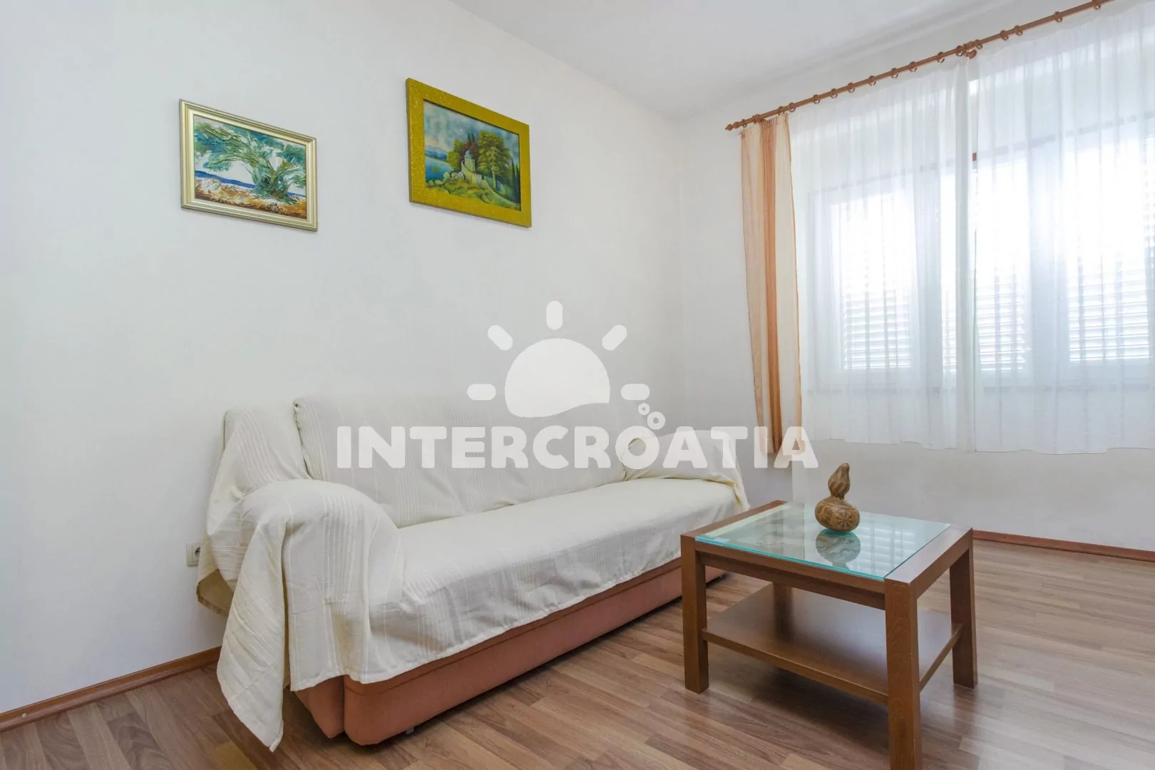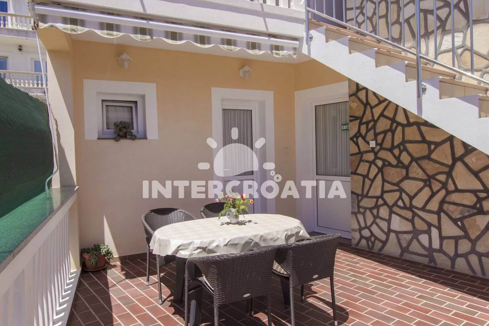 Vzdálenosti: Moře 150 m, oblázková pláž 300 m, centrum 150 m, supermarket do 100 m, půjčovna cyklistických kol 500 m, půjčovna motorových člunů 400 m, bar 200 m, restaurace do 200 m, směnárna 400 m, disko klub 400 m, pošta 500 m, přístav 500 m, ambulance 590 m, lékárna 600 m, veřejná doprava 600 m, banka 500 m, čerpací stanice 1 km, tenisové kurty 1,5 km, park Plitvice 23 km, letiště (Zadar) 60 km, trajekt 68 km.