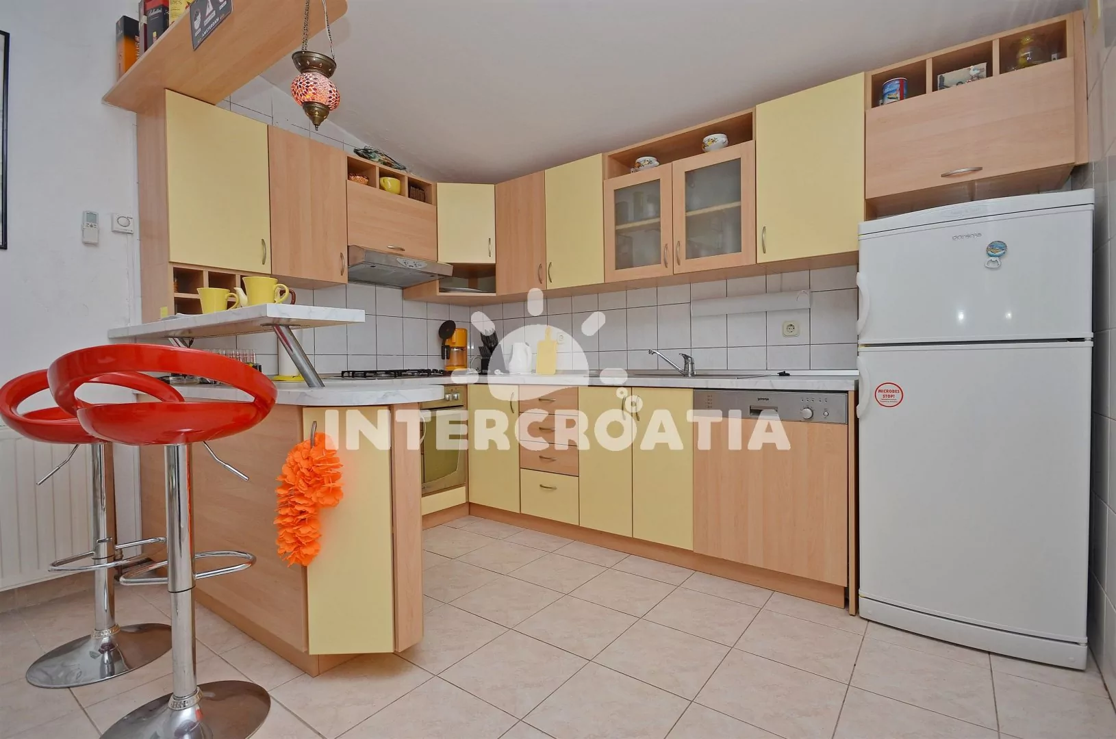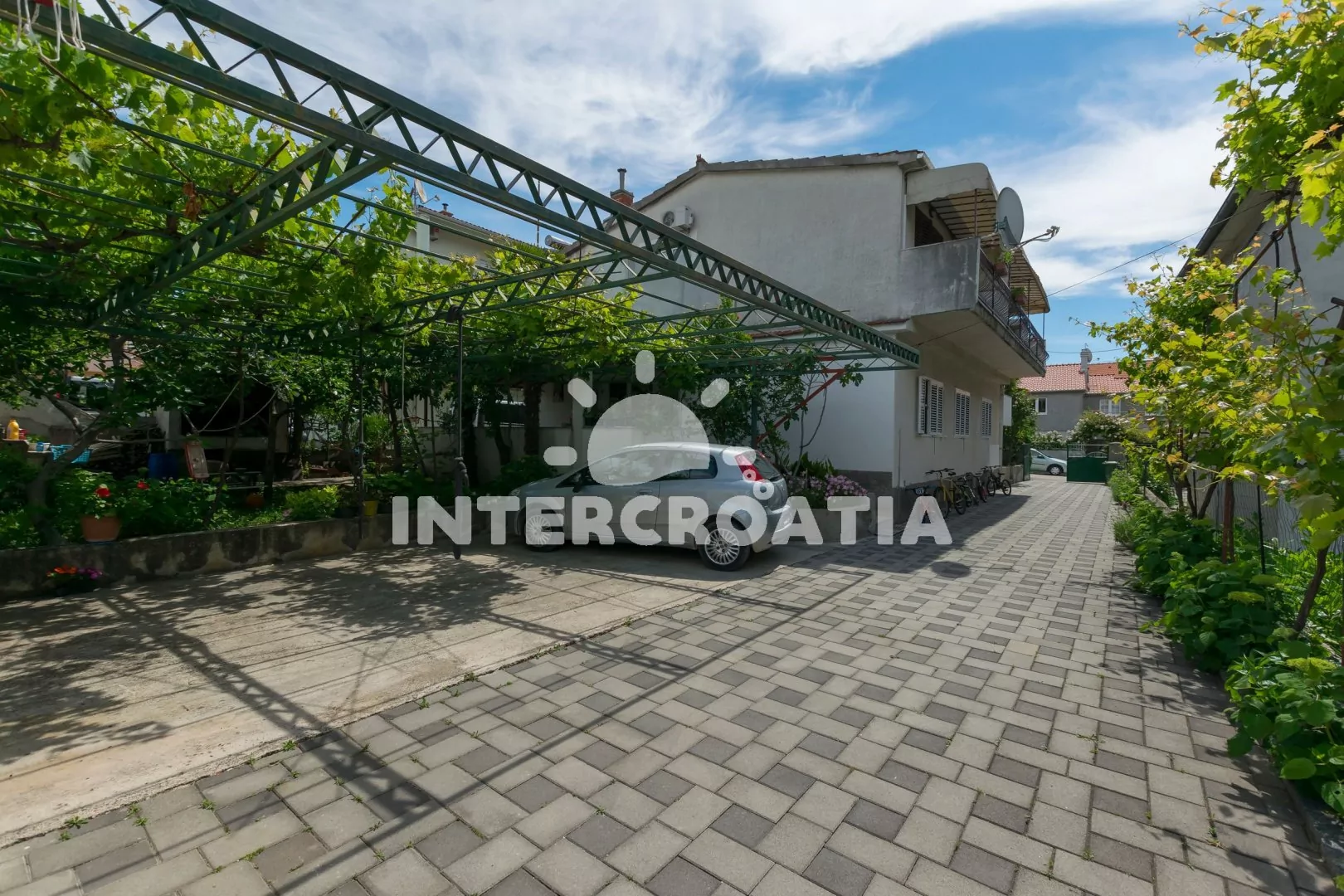 Vzdálenosti: Moře a oblázková pláž 200 m, centrum a restaurace 100 m, supermarket 50 m, půjčovna cyklistických kol 60 m, půjčovna motorových člunů a bar 100 m, směnárna a pošta 200 m, přístav 300 m, ambulance, lékárna, veřejná doprava a banka 200 m, čerpací stanice 800 m, letiště, trajekt 45 km.