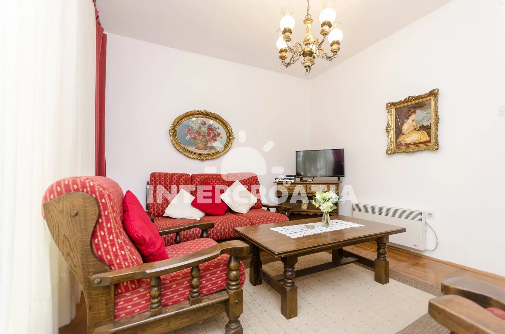 Apartmán (65 m2) s terasou a venkovním posezením se nachází v přízemí domu. Apartmán má 2 ložnice a je vhodný pro až 4 osoby. Obývací pokoj je spojený s kuchyní. Kuchyňská linka je vybavena sporákem…