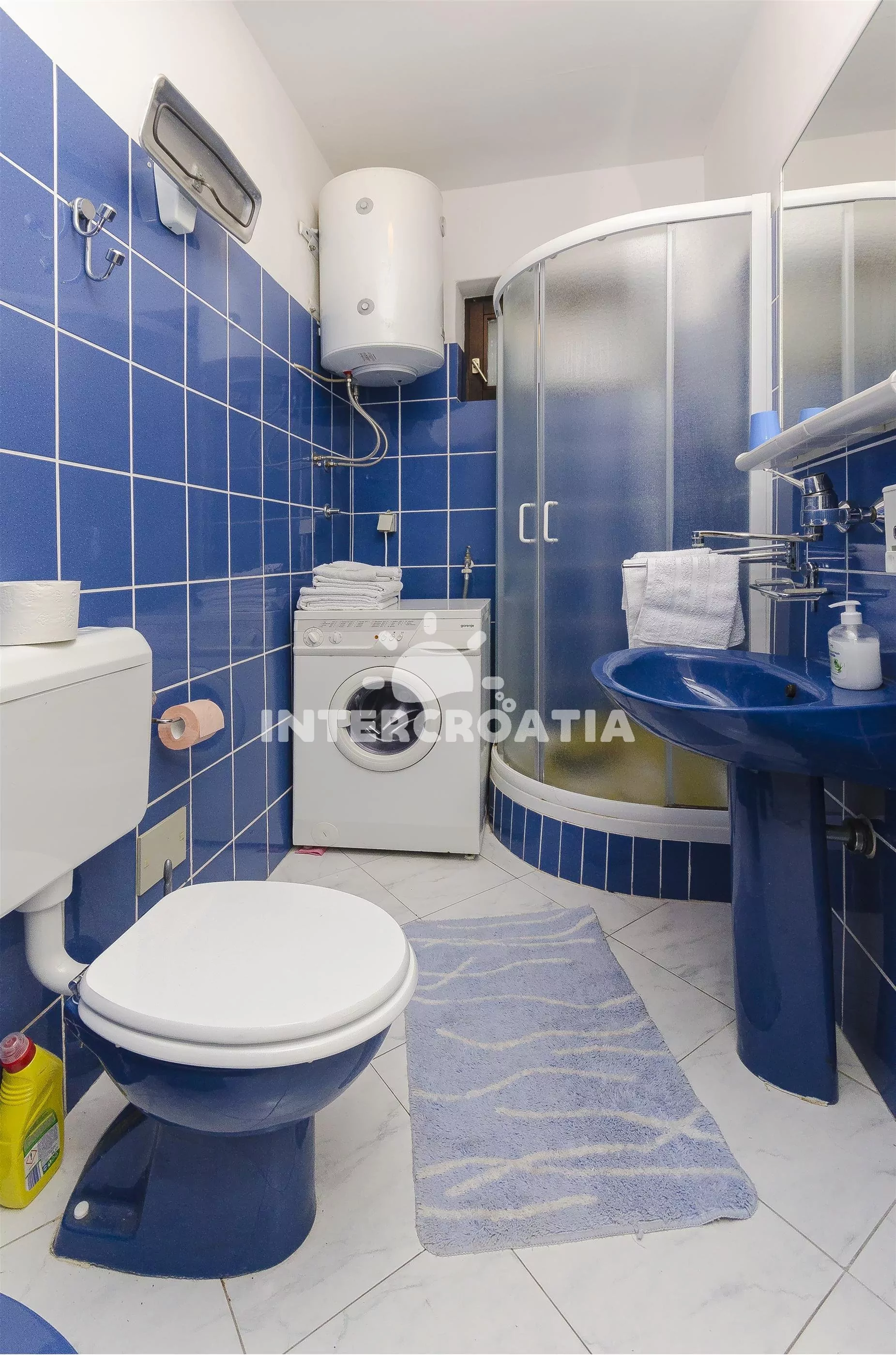Vzdálenosti: Moře a oblázková pláž 450 m, supermarket a veřejná doprava 200 m, směnárna 300 m, restaurace a bar 400 m, čerpací stanice 600 m, ambulance, lékárna a banka 900 m, centrum města 980 m, přístav 800 m, pošta 1 km, park Plitvice 25 km, letiště (Zadar) 65 km.