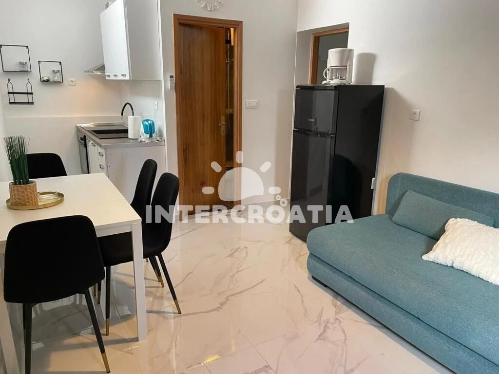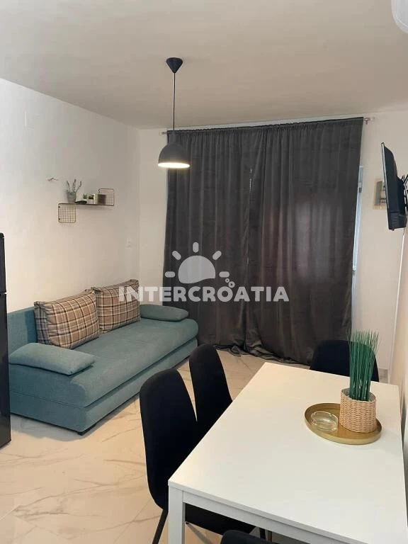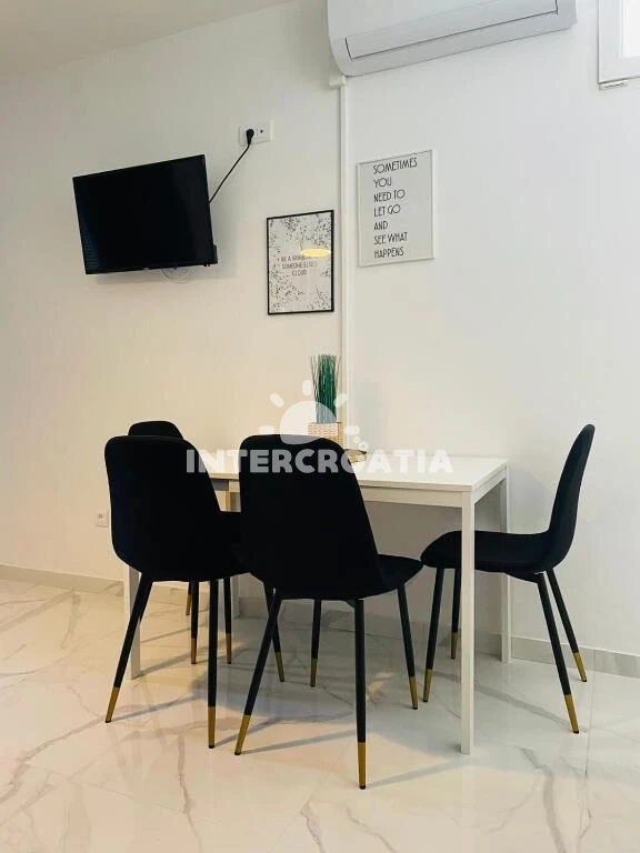 Apartmán (40 m2) s terasou a venkovním posezením se nachází v přízemí domu. Apartmán má 1 ložnici a je vhodný pro až 4 osoby. Obývací pokoj je spojený s kuchyní. Kuchyňská linka je vybavena varnou deskou, digestoří, vestavěnou troubou, rychlovarnou konvicí, mikrovlnnou troubou, kávovarem, nádobím a lednicí s mrazákem. Obývací pokoj s jídelním stolem, pohovkou (rozložitelná na extra lůžko pro 2 osoby), televizí, klimatizací a vstupem na terasu. Ložnice s jedním dvoulůžkem. Koupelna se sprchovým koutem, umyvadlem, fénem a wc. Hostům je k dispozici parkování u objektu zdarma.