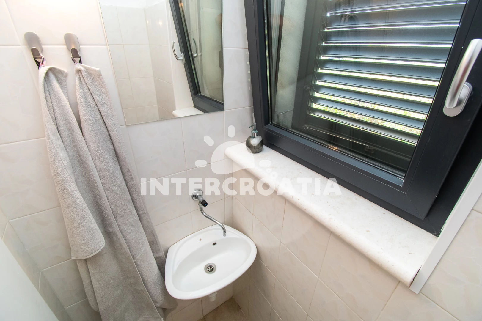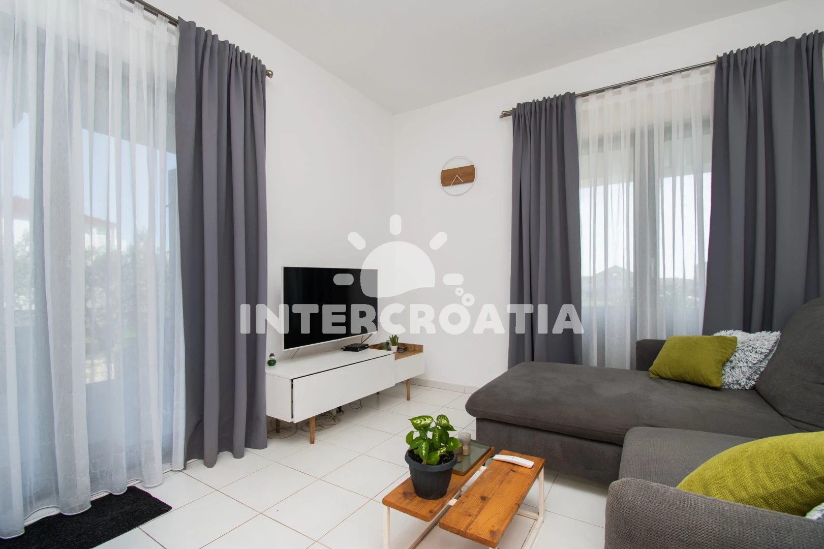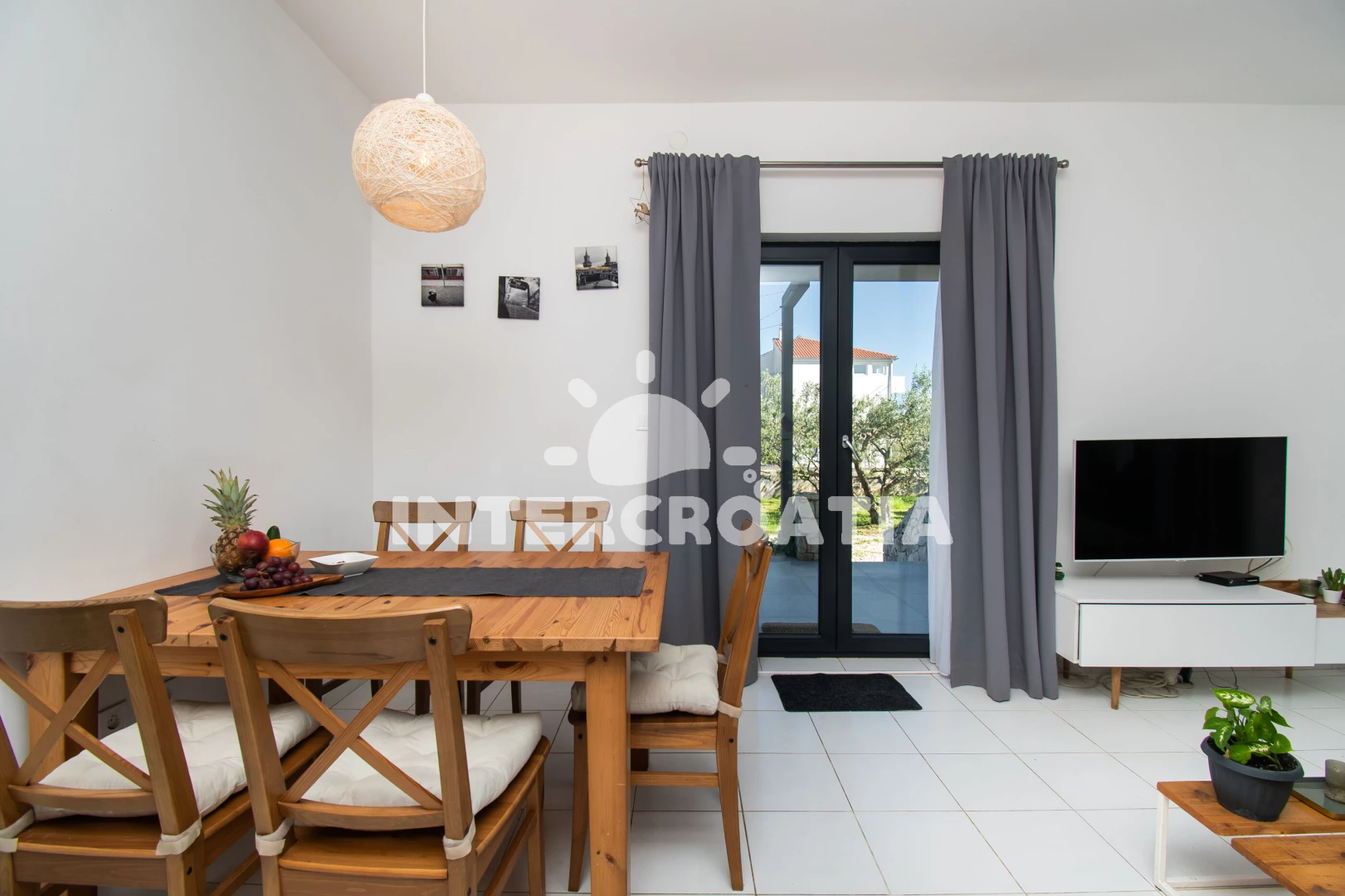 Vzdálenosti: Moře a oblázková pláž 850 m, restaurace 150 m, supermarket 370 m, bar 380 m, ambulance a lékárna 820 m, centrum města 900 m, pošta 980 m, banka 820 m, pak Plitvice 25 km, trajekt 65 km, letiště (Zadar) 65 km.