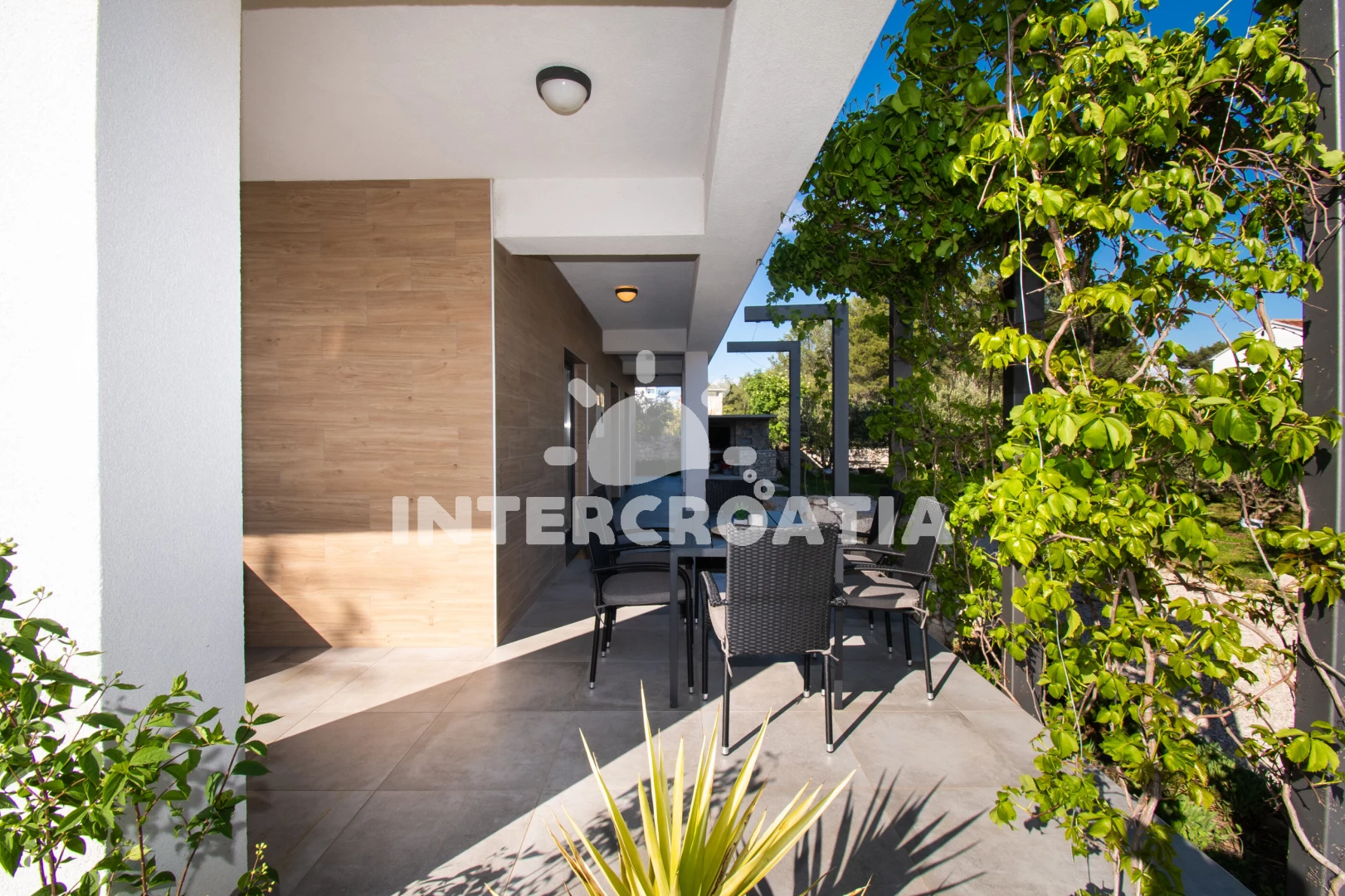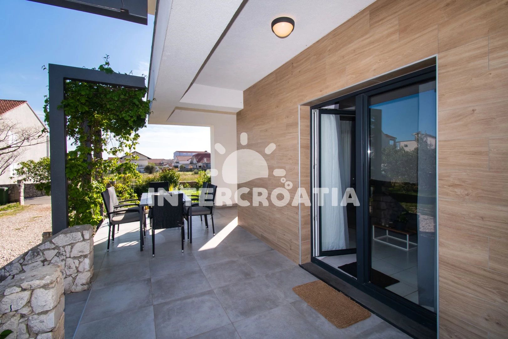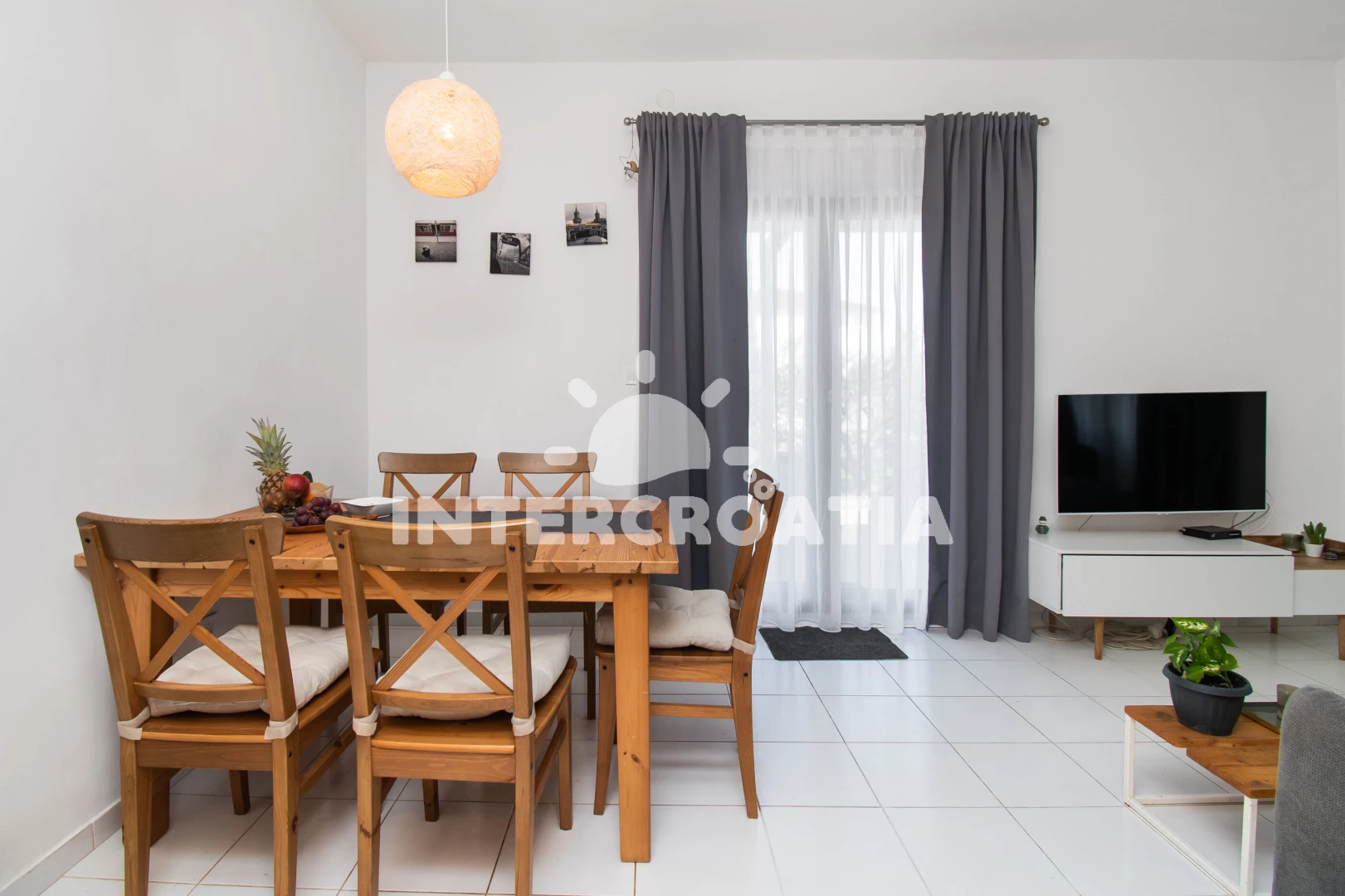 Vzdálenosti: Moře a oblázková pláž 850 m, restaurace 150 m, supermarket 370 m, bar 380 m, ambulance a lékárna 820 m, centrum města 900 m, pošta 980 m, banka 820 m, pak Plitvice 25 km, trajekt 65 km, letiště (Zadar) 65 km.