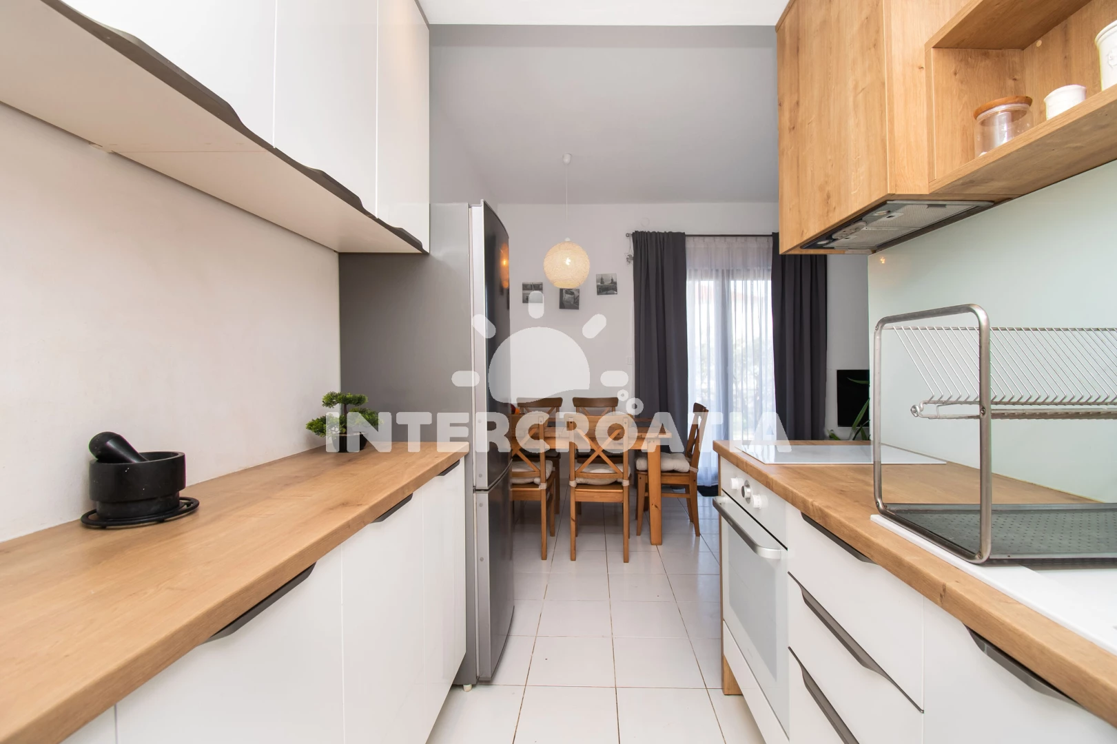 Apartmán (60 m2) s terasou a venkovním posezením se nachází v přízemí vily. Apartmán má 2 ložnice a je vhodný pro až 5 osob. Obývací pokoj je spojený s kuchyní. Kuchyňská linka je vybavena…