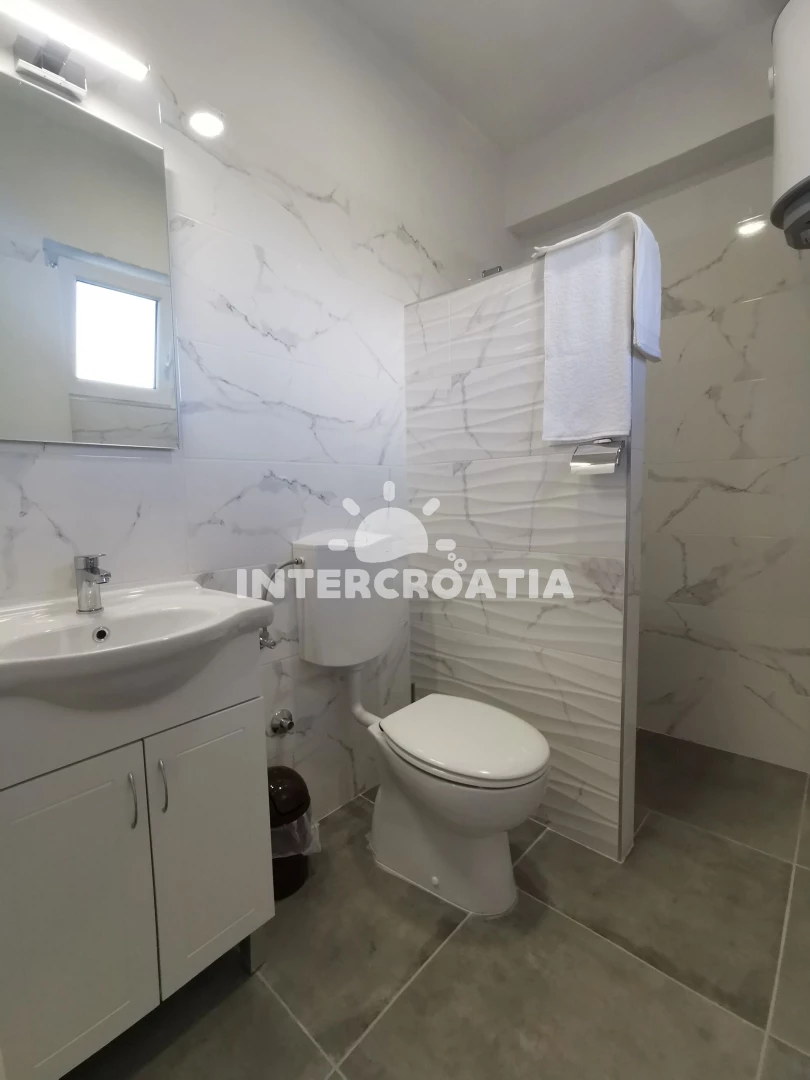 Vzdálenosti: Moře a oblázková-betonová pláž 450 m, centrum 700 m, restaurace a bar 350 m, obchod s potravinami 300 m, ambulance, lékárna, směnárna, přístav a veřejná doprava 1 km, diskotéka 1,2 km, čerpací stanice 1,6 km, park Plitvice 23 km, trajekt (Zadar) 80 km, letiště (Zadar) 68 km.
