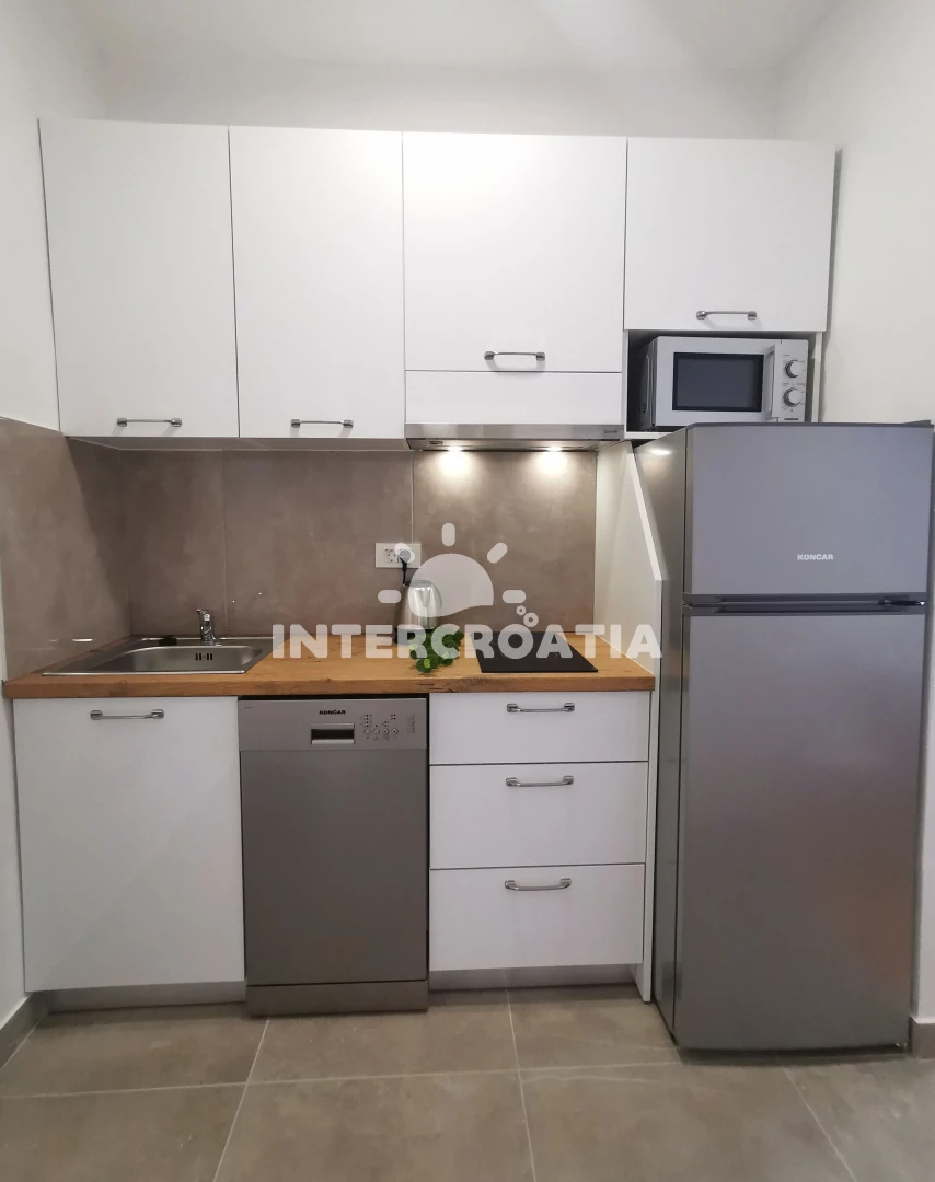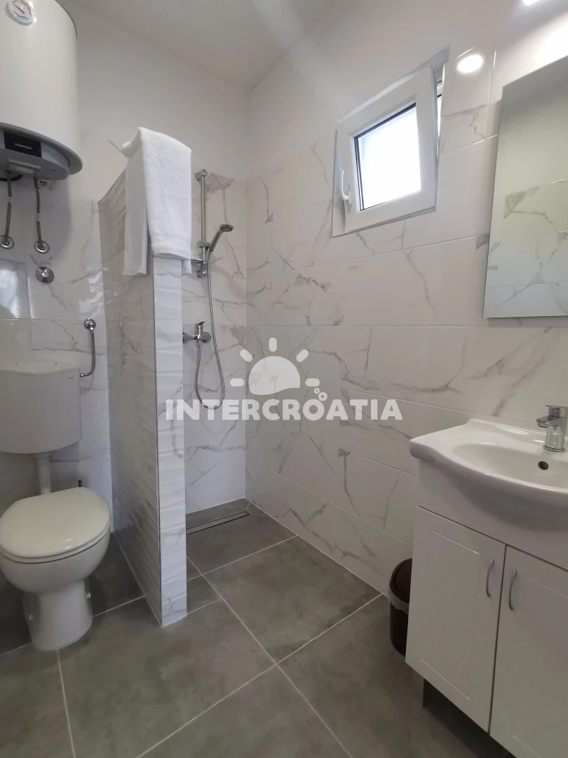 Vzdálenosti: Moře a oblázková-betonová pláž 450 m, centrum 700 m, restaurace a bar 350 m, obchod s potravinami 300 m, ambulance, lékárna, směnárna, přístav a veřejná doprava 1 km, diskotéka 1,2 km, čerpací stanice 1,6 km, park Plitvice 23 km, trajekt (Zadar) 80 km, letiště (Zadar) 68 km.