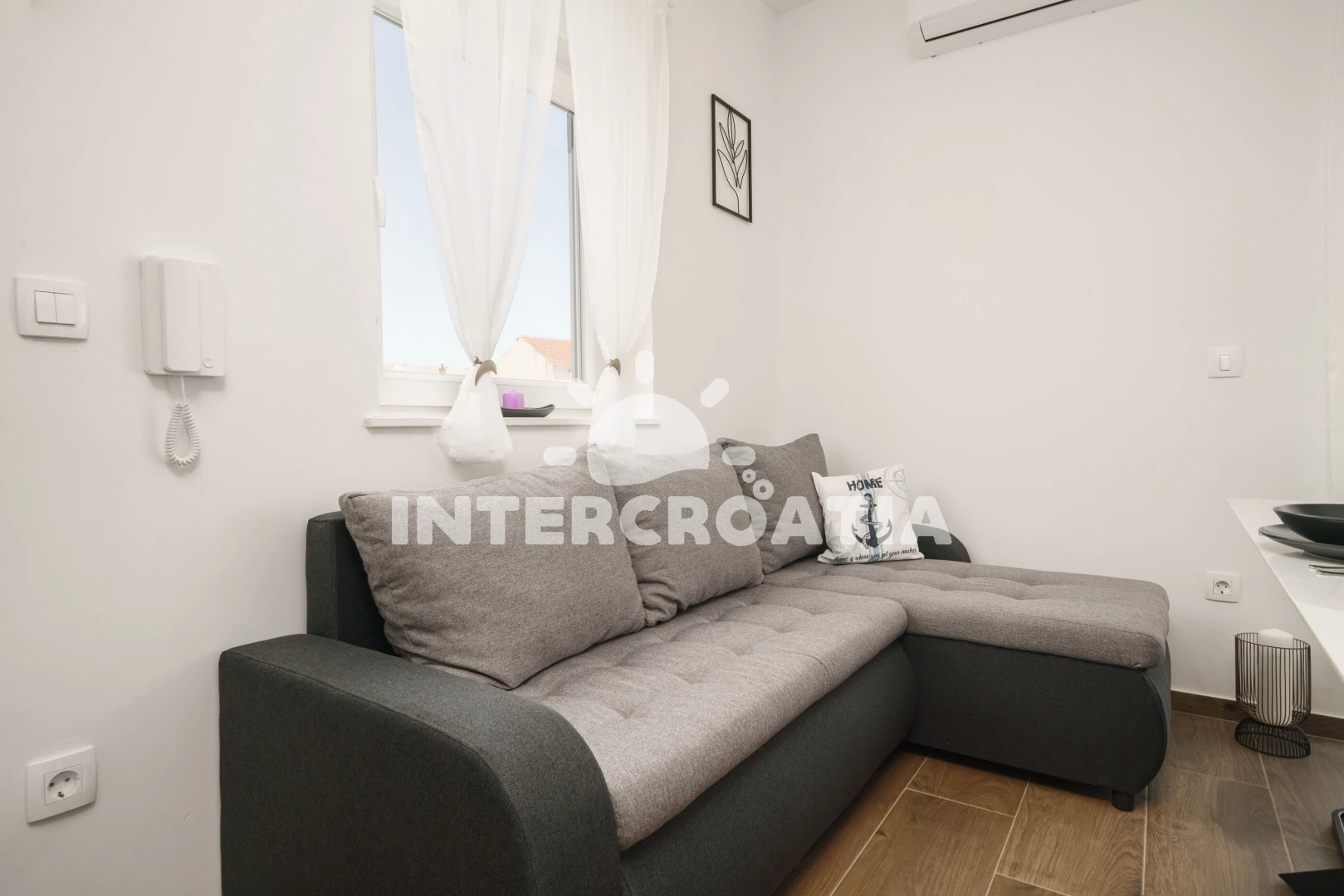 Moderně zařízený apartmánový dům se nachází 300 m pěší chůzí od moře, 700 m od menší oblázkové pláže a 800 m od větší pláže Plava. Dům nabízí ubytování v klimatizovaných apartmánech s lodžiemi a venkovním posezením. U domu je k dispozici dvůr s parkovacími místy pro automobily.