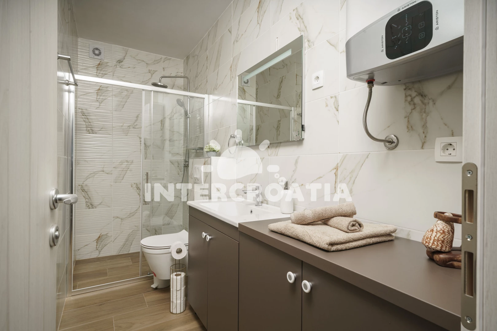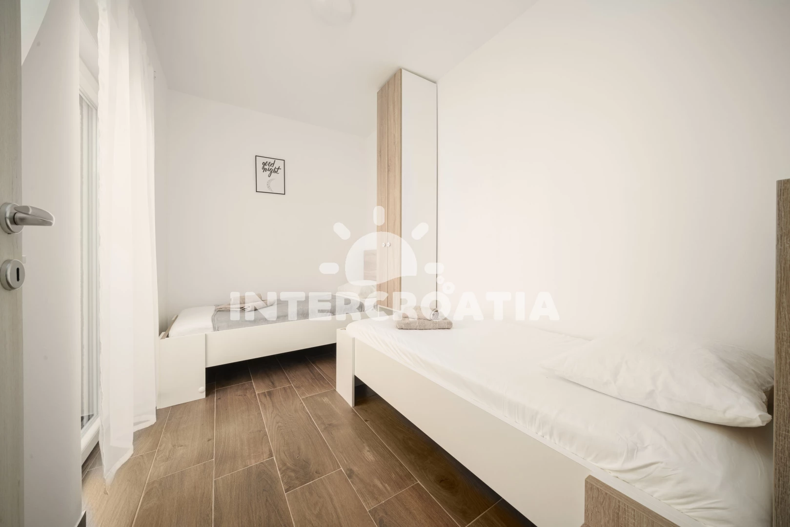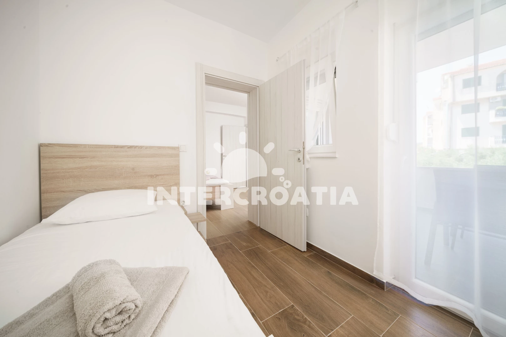 Vodice je ideální destinací pro nezapomenutelnou letní dovolenou. Ubytování se nachází 700 m od smaragdového moře a oblázkové pláže, kde si užijete perfektní koupání. Za 800 m od apartmánu přijdete k oblázkové pláži Plava, kterou doplňují betonové plochy k ležení. Pláž má nejlepší zázemí pro celodenní rekreaci s dětmi. Do čistého moře vede krásně pozvolný přístup. Vybrané oblasti pláže tvoří příjemný písek, kde si vyhrají zejména děti mladšího věku. Zábavou láká šnorchlování, jízda na šlapadlech a další vodní aktivity. Přímo u pláže si pochutnejte na výborném jídle v restauracích. Rádi byste se seznámili s historií letoviska? Navštivte kostel Nalezení sv. Kříže z 18. století a cennou obrannou věž Čarićev. Naučný odpolední program, ale také fascinující pohled do hlubin moře slibuje exkurze v Akváriu a muzeu námořní tradice. Vodické hry, slavnost Panny Marie Karmelské a Vodička fešta vás seznámí s tradicemi a dalmátskou gastronomií. Bohatší kulturní vyžití a dech-beroucí historické centrum vévodí Trogiru. Procházka po Trogiru vám představí krásnou katedrálu sv. Vavřince, pevnost Kamerlengo, obrannou věž sv. Marka, palác Lucićů, kostel sv. Barbory, Mořskou a Pevninskou bránu. Nezapomeňte si také naplánovat poznávací výlet do Šibeniku. Milovníci přírody a si nenechají ujít celodenní výlet do Národního parku Krka. Území parku se pyšní nedotčenou přírodou a Skradinskými vodopády. Sportovce potěší pěší túra nebo cyklistický výlet v okolí Vodice.