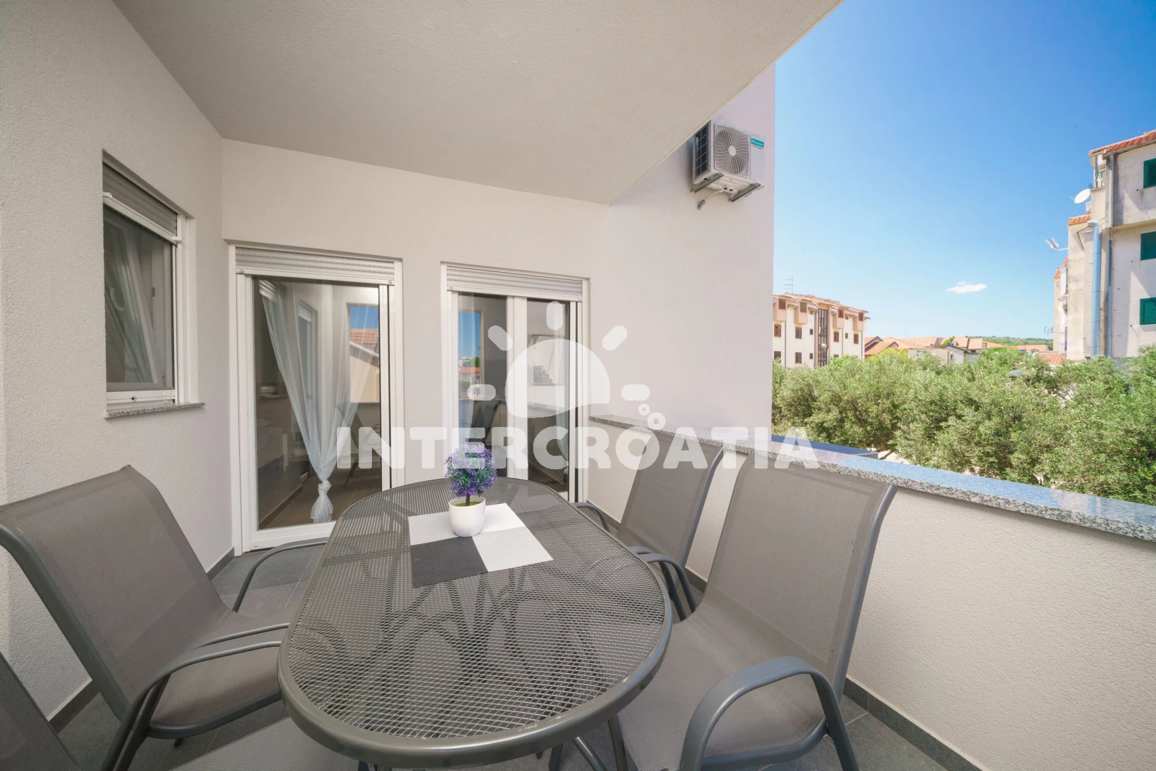 Vzdálenosti: Moře a oblázková pláž 700 m, pláž Plava 800 m, supermarket 260 m, restaurace 110 m, bar 100 m, banka, pošta, centrum města, veřejná doprava, lékárna, směnárna a ambulance 300 m, přístav 450 m, park Plitvice 25 km, letiště (Zadar) 60 km.