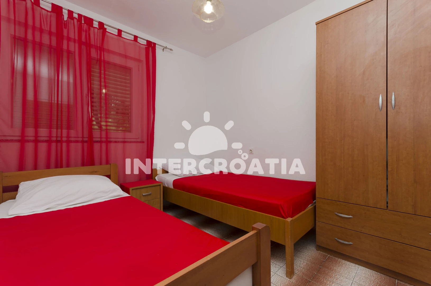 Vodice patří k velmi oblíbeným destinacím pro strávení letní dovolené u moře. Nejlepší ochlazení a plavání vás čeká v tyrkysově modrém moři, které leží 800 m od apartmánu. Pláž Male Vrulje tvoří příjemné oblázky a betonové plochy. Pobřeží lemují borovice, které výborně slouží jako stinné útočiště před sluníčkem. V dohledu pláže můžete posedět v kavárně a dát si chutný oběd v restauraci. Pěknou pláží, vhodnou i pro rodiny s dětmi je oblázková pláž Hangar. Sportovci určitě zaujme možnost potápění, jízdy na vodních lyžích, windsurfingu, hry minigolfu, tenisu nebo zapůjčení motorových člunů. Po společné večeři v útulné restauraci se můžete projít kamennými ulička a objevit obrannou věž Čarićev z 16. století a kostel Nalezení sv. Kříže z 18. století. Všechny věkové kategorie nadchne příležitost zblízka si prohlédnout podmořský svět v Akváriu a muzeu námořní tradice. Zábava, dalmátské speciality a hudební vystoupení neodmyslitelně patří k události Vodička fešta, Vodické hry a slavnosti Panny Marie Karmelské. Jedním z nejkrásnějších výletů, které můžete v Chorvatsku zažít je návštěva Národního parku Krka. Projdete se panenskou přírodou a vykoupete se u proslulých Skradinských vodopádů. Před vaším odjezdem nezapomeňte odhalit známý Šibenik.
