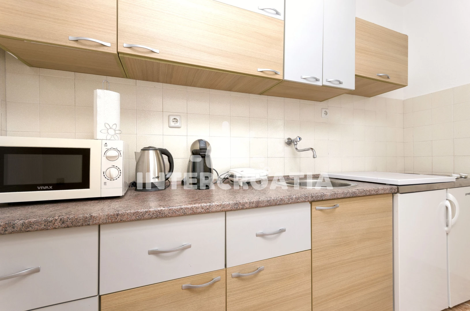 Vodice, na pobřeží Severní Dalmácie, je ideální destinací pro nezapomenutelnou rodinnou dovolenou. Ubytovací objekt se nachází 1,2 km od smaragdového moře a menší oblázkové pláže, kterou doplňují betonové plochy k ležení. Velká oblázková pláž Plava je 1,4 km. Pláž má skvělé podmínky pro rekreaci s dětmi. Do čistého moře vede krásně pozvolný vstup. Některé oblasti pláže tvoří příjemný písek, kde si vyhrají zejména mladší děti. Zábavu si užijete během šnorchlování, jízdy na šlapadlech a různé vodní atrakce. Hned u pláže můžete posedět a pochutnat si na výborném jídle v restauracích. Rádi byste se něco dozvěděli o historii letoviska? Navštivte kostel Nalezení sv. Kříže z 18. století a cennou obrannou věž Čarićev. Zajímavý odpolední program slibuje exkurze v Akváriu a muzeu námořní tradice. Událost Vodické hry, slavnost Panny Marie Karmelské a Vodička fešta vás seznámí s pestrými zvyky a dalmátskou gastronomií. Bohatší kulturní dění a nádherné historické centrum vás nadchne v Trogiru. Procházka po Trogiru vám odhalí krásnou katedrálu sv. Vavřince, pevnost Kamerlengo, obrannou věž sv. Marka, palác Lucićů, kostel sv. Barbory, Mořskou a Pevninskou bránu. Nezapomeňte si také naplánovat výlet do Šibeniku. Milovníci přírody si nenechají ujít celodenní výlet do Národního parku Krka. Území parku vévodí panenská příroda a Skradinské vodopády. Sportovci vyrazí na pěší túru nebo cyklistický výlet v okolí Vodice.