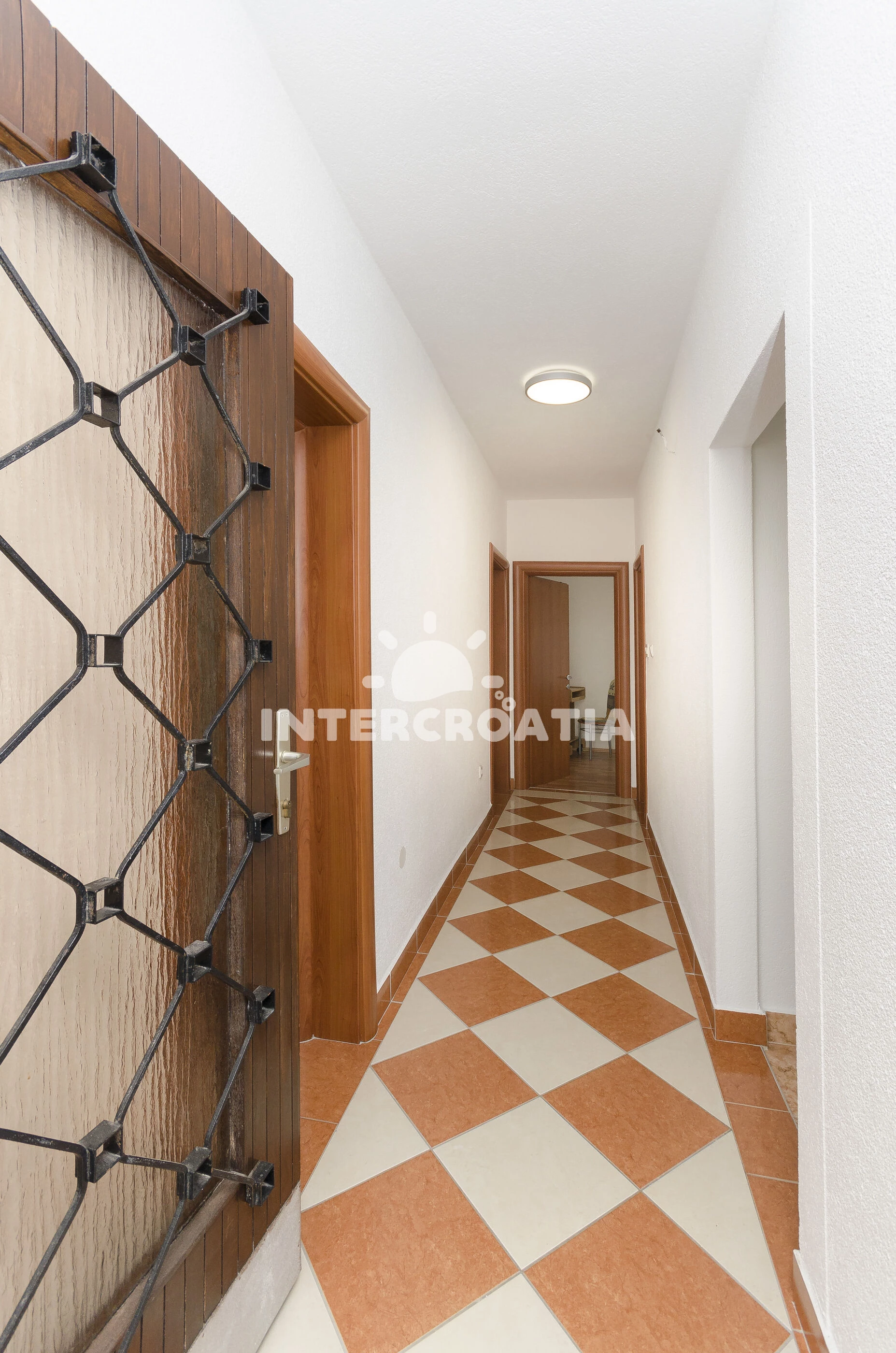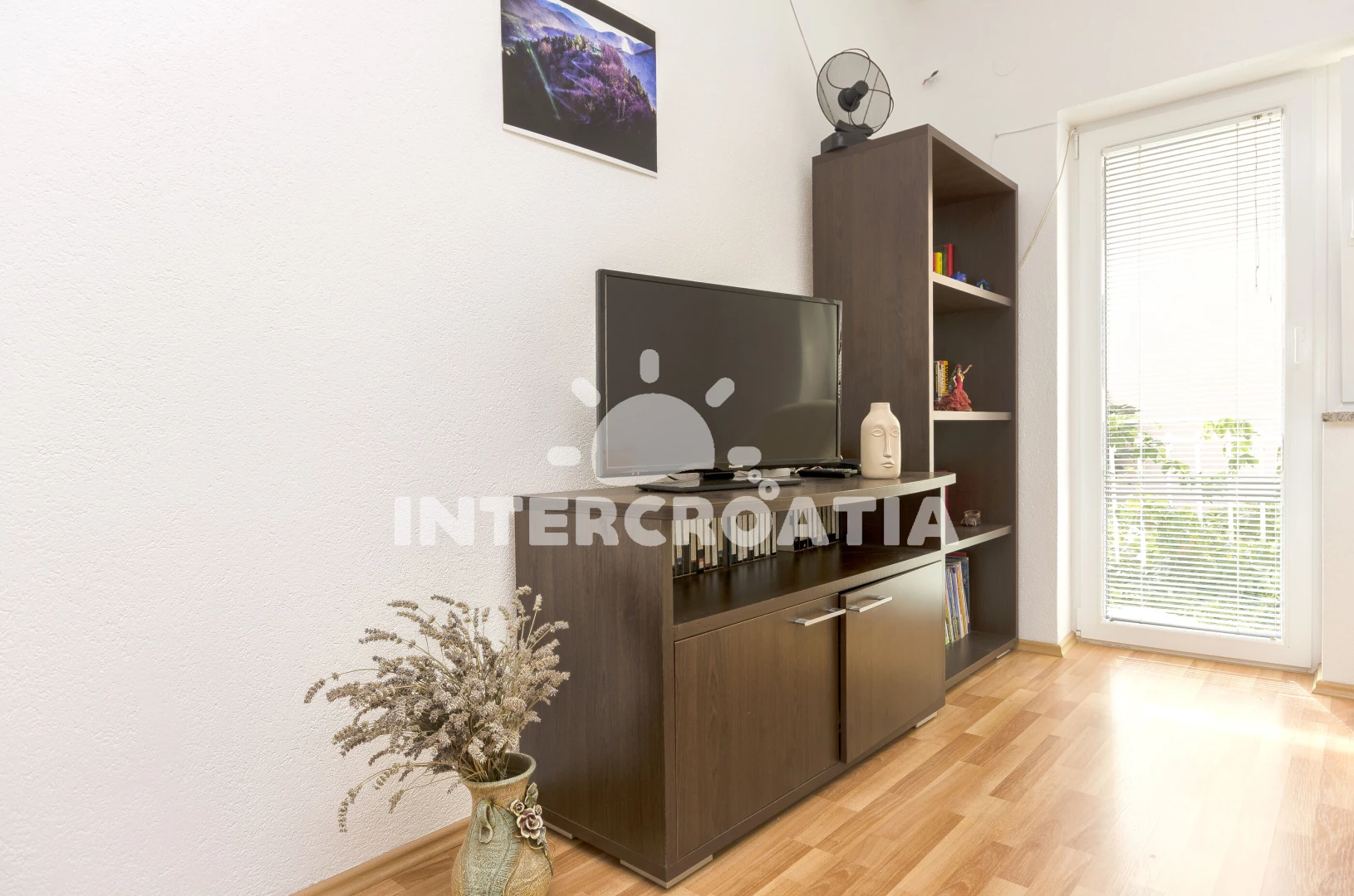 Vzdálenosti: Moře a menší oblázková pláž 1,2 km, velká oblázková-písečná pláž Plava 1,4 km, supermarket 400 m, restaurace 500 m, bar 800 m, centrum města, ambulance, banka a pošta 900 m, přístav 950 m, lékárna 700 m, veřejná doprava 350 m, park Plitvice 25 km, letiště (Zadar) 65 km.