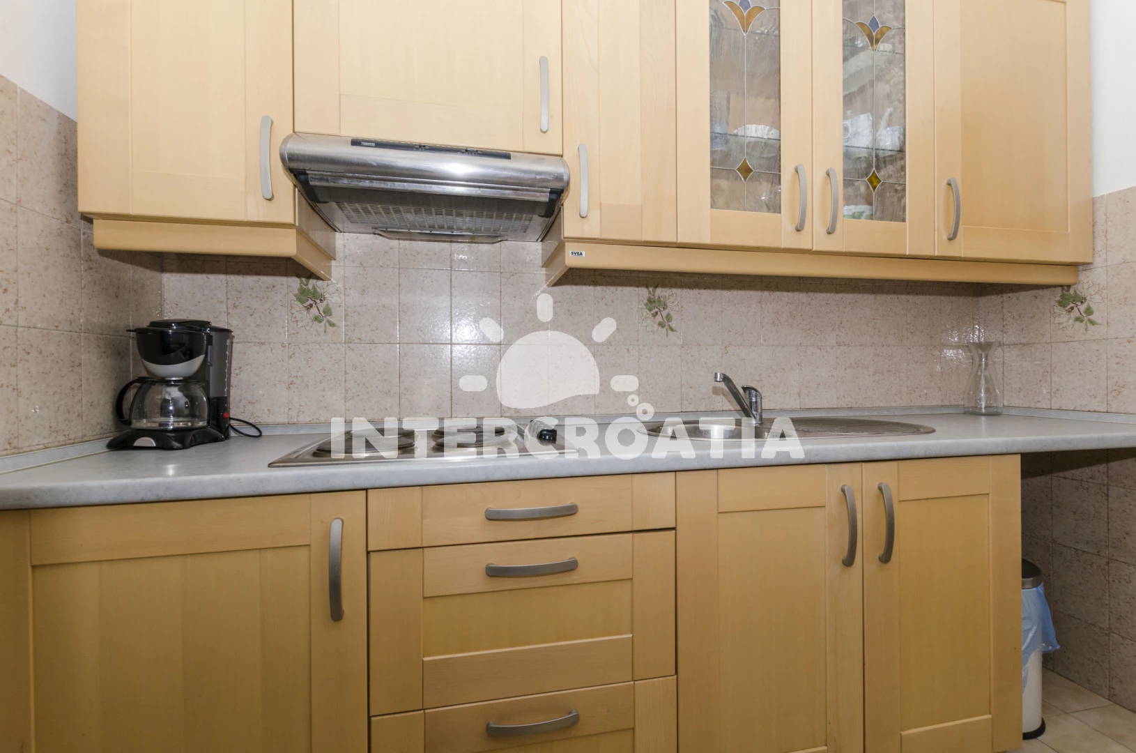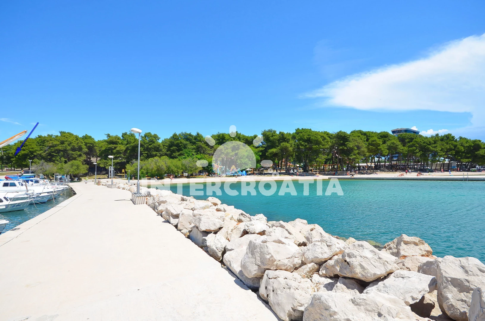 Vzdálenosti: Moře 200 m, pláž 200 m (oblázky), směnárna 100 m, potápění 100 m, čerpací stanice 200 m, supermarket 300 m, bar 400 m, veřejná doprava 400 m, ambulance 400 m, restaurace 400 m, lékárna 400 m, banka 400 m, pošta 400 m, diskotéka 500 m, tenisové kurty 500 m, centrum 600 m, trajekt (Zadar) 45 km, letiště (Zadar) 45 km,