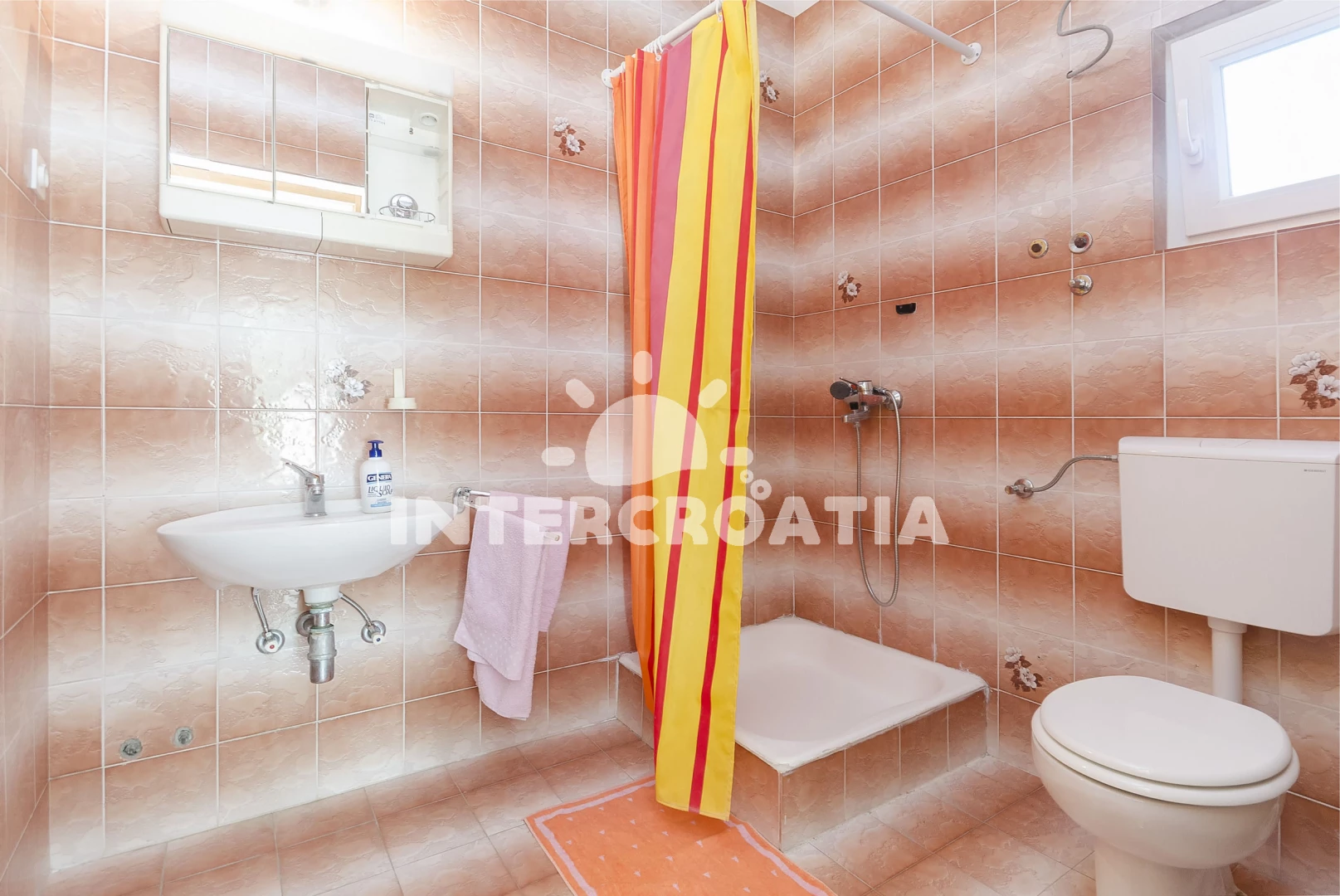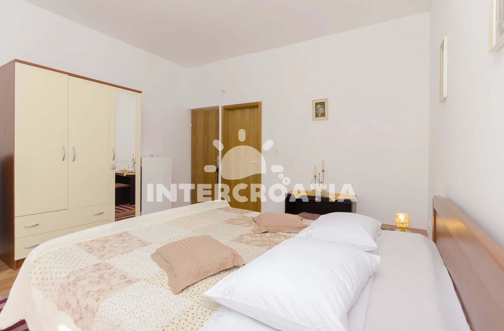 Apartmán se nachází 500 m od moře a pláže. Pláž je skalnatá, oblázková, větší kamení a betonové desky. U objektu je k dispozici společná zahrada s posezením a grilem.