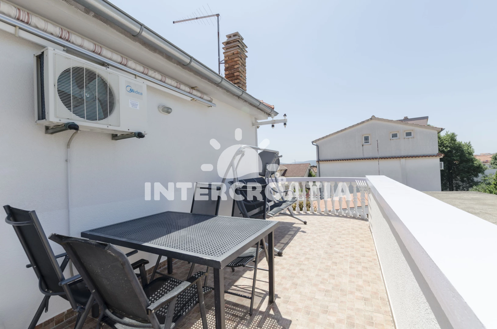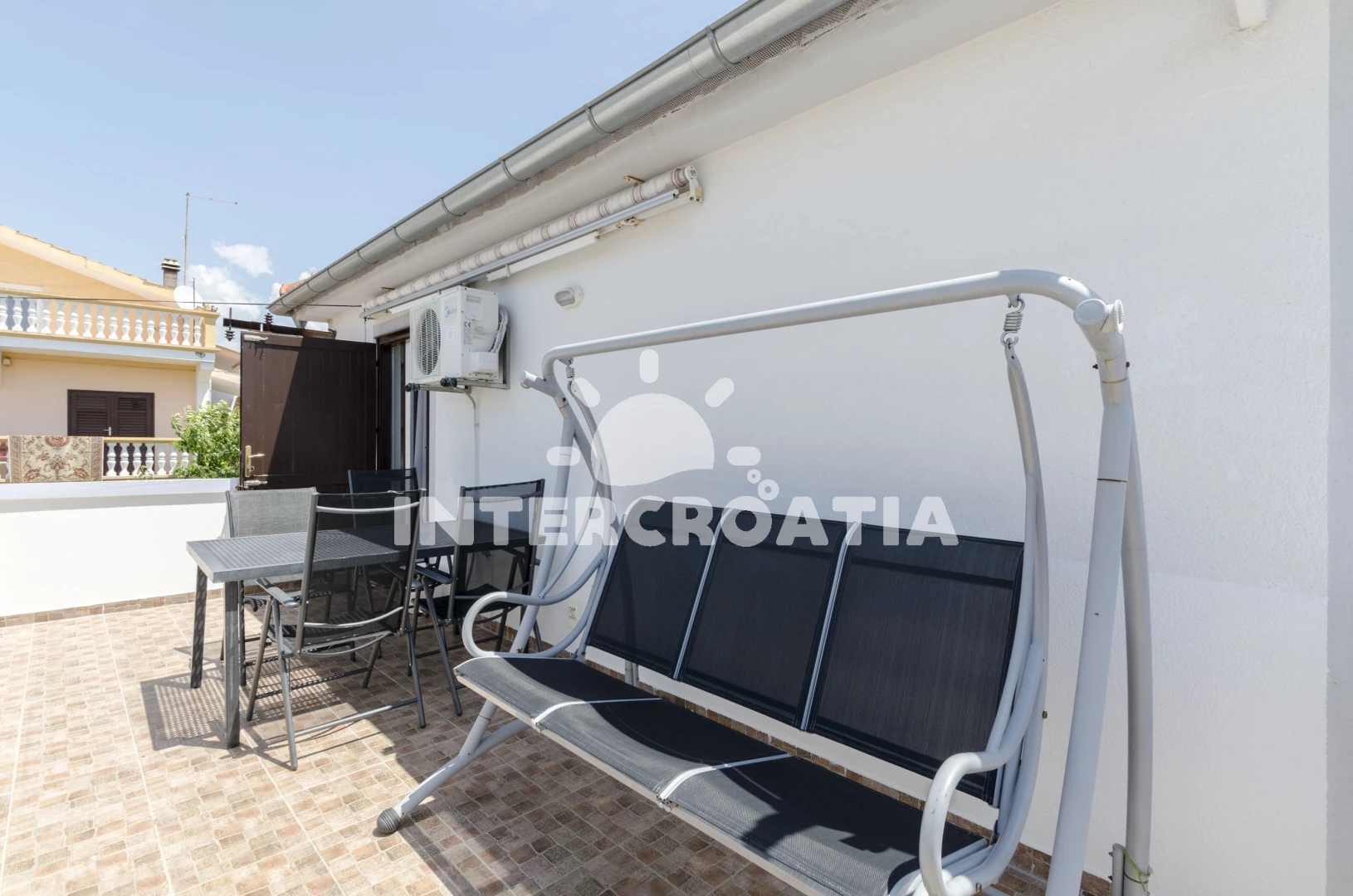 Apartmán (2) s terasou. Nachází se v objektu. Apartmán má 1 ložnici a je vhodný pro až 4 osoby. Kuchyňská linka je vybavena varnou deskou, kávovarem, toustovačem, troubou, myčkou na nádobí, mikrovlnnou troubou, rychlovarnou konvicí, nádobím, lednicí, mrazákem. K dispozici televize, radio, žehlička. Dále samostatné WC.