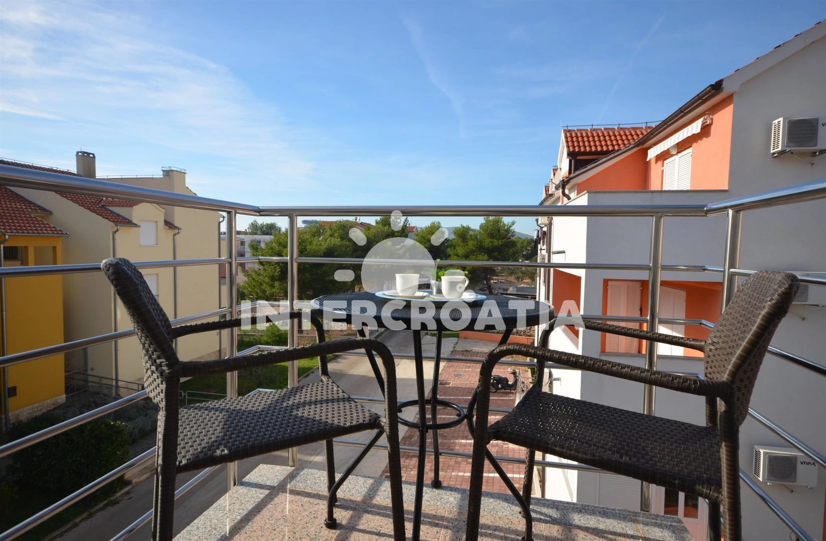 Vzdálenosti: Moře 450 m, pláž 550 m (oblázky), supermarket 350 m, bar 400 m, restaurace 400 m, veřejná doprava 420 m, půjčovna kol 700 m, směnárna 800 m, čerpací stanice 1 km, centrum 1,2 km, banka 1,2 km, diskotéka 1,3 km, lékárna 1,4 km, ambulance 1,4 km, pošta 1,5 km, letiště (Zadar) 65 km, trajekt (Split) 85 km,