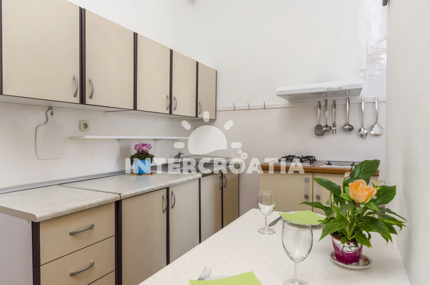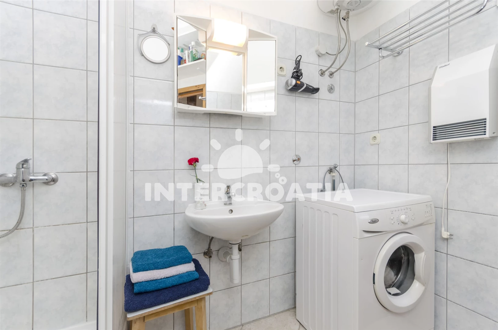 Vzdálenosti: bar 0 m, Moře 350 m, pláž 390 m (oblázková a betonové desky), supermarket 250 m, ambulance 330 m, lékárna 330 m, banka 330 m, směnárna 330 m, restaurace 340 m, veřejná doprava 350 m, centrum 350 m, marina 390 m, park Plitvice 25 km, letiště (Zadar) 65,0 km, trajekt (Split) 85 km,