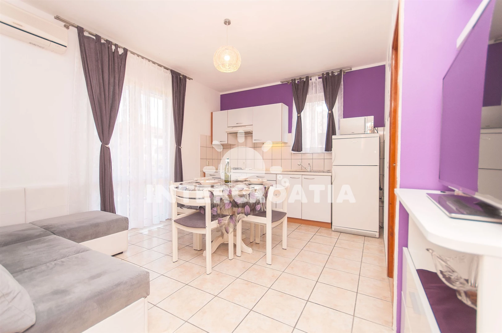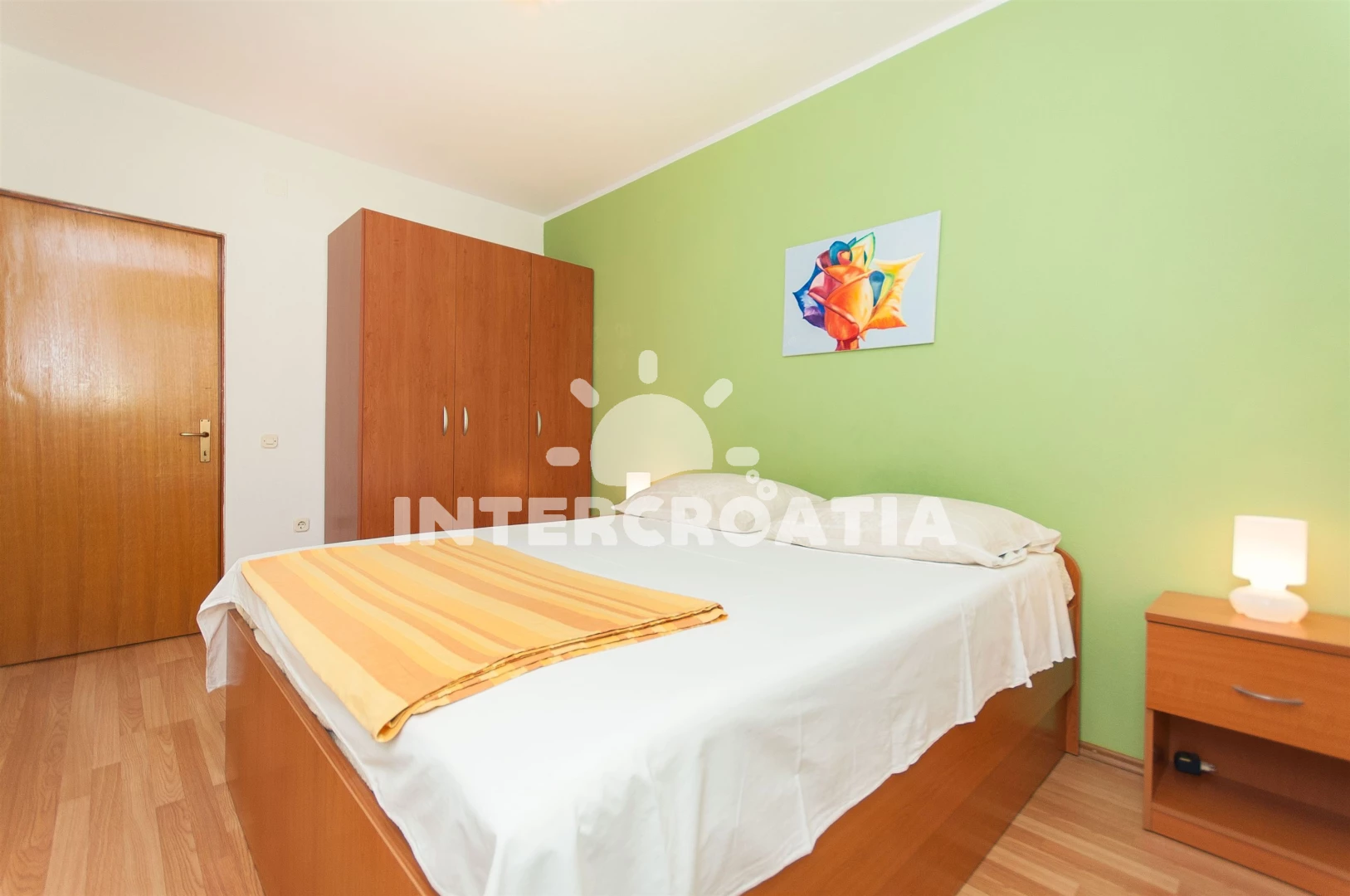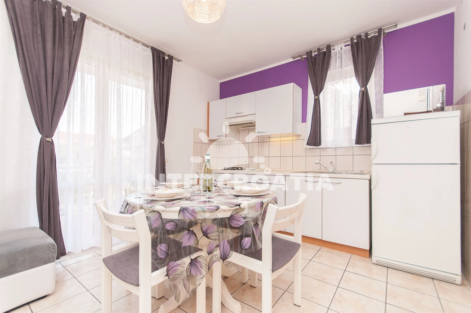 Apartmán se nachází 300 m od moře a pláže. Pláž je oblázková a betonové desky. U objektu je k dispozici společná zahrada s posezením a grilem. Parkování je před domem.