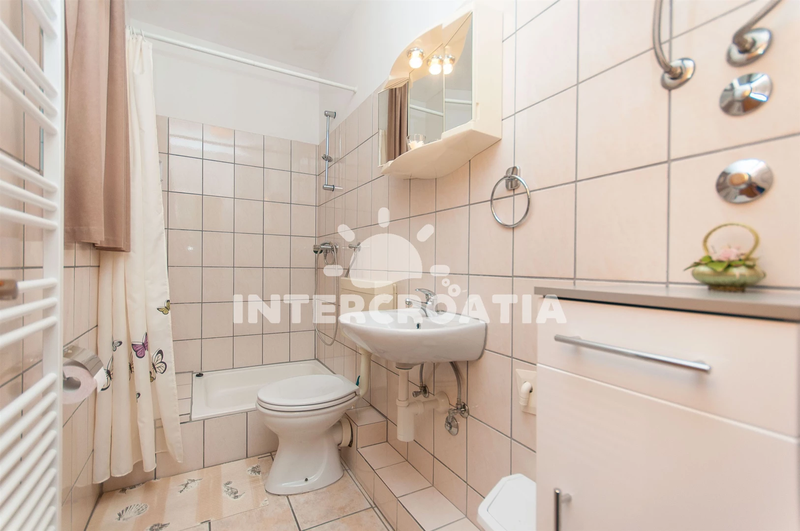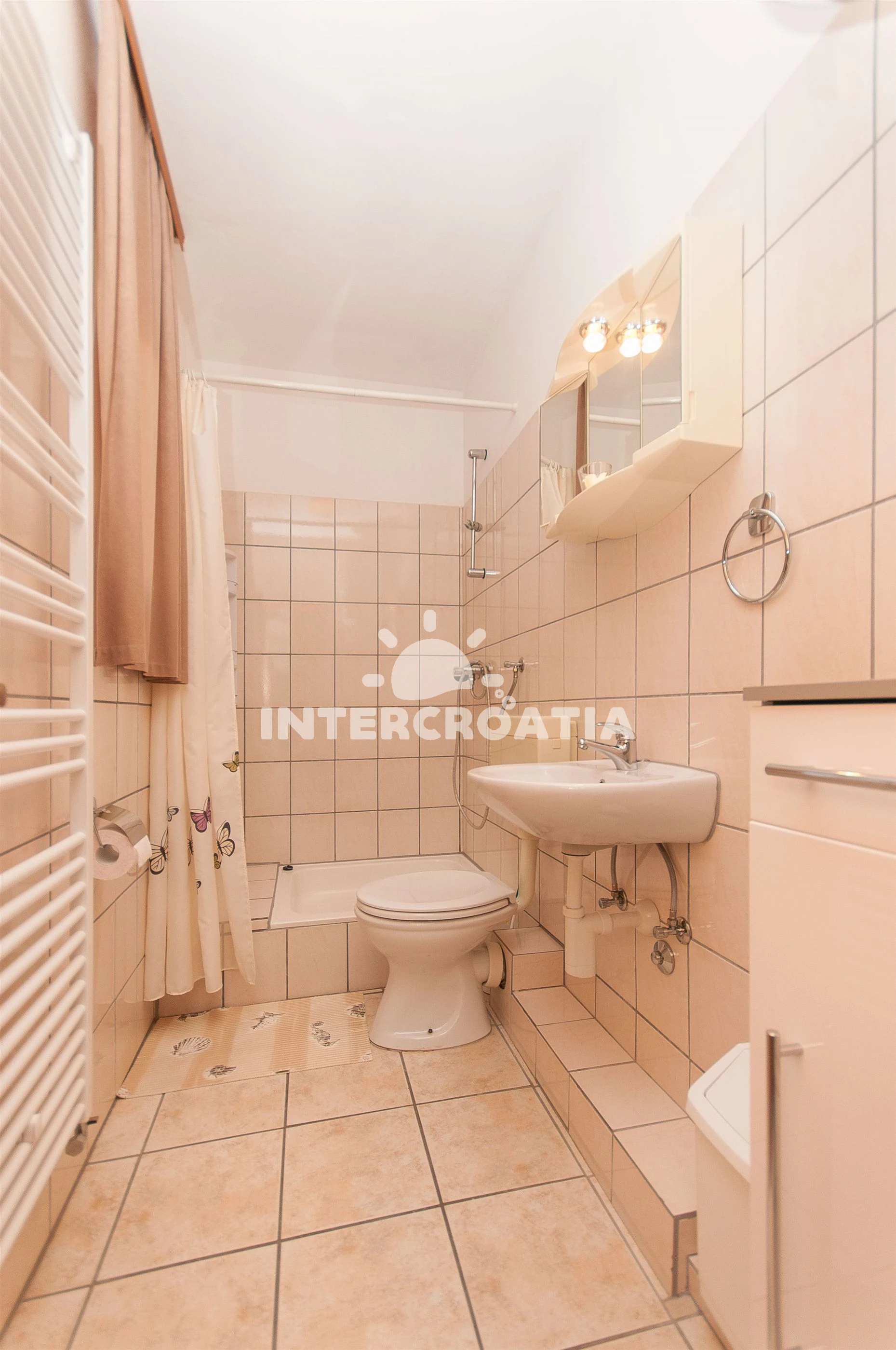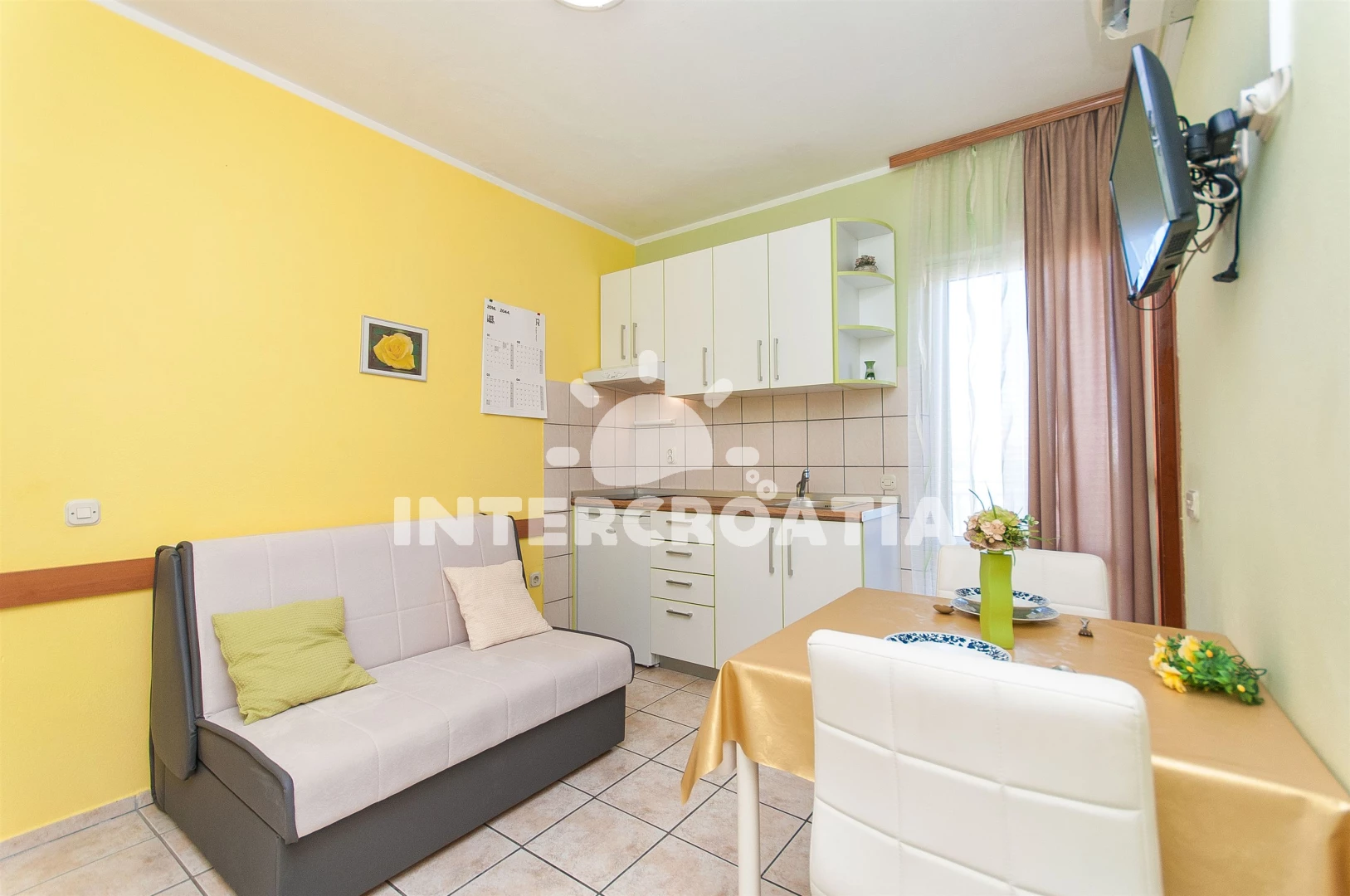 Vzdálenosti: Moře 300 m, pláž 300 m (oblázková a betonové desky), supermarket 200 m, půjčovna motorových člunů 400 m, potápění 400 m, půjčovna kol 400 m, restaurace 400 m, tenisové kurty 400 m, bar 400 m, kotviště pro čluny 500 m, marina 500 m, muzeum 500 m, banka 500 m, pošta 500 m, směnárna 500 m, centrum 600 m, ambulance 700 m, lékárna 700 m, veřejná doprava 700 m, čerpací stanice 2 km, mini golf 3,5 km, diskotéka 3,5 km, trajekt (Šibenik) 14 km, letiště (Split) 50,0 km,