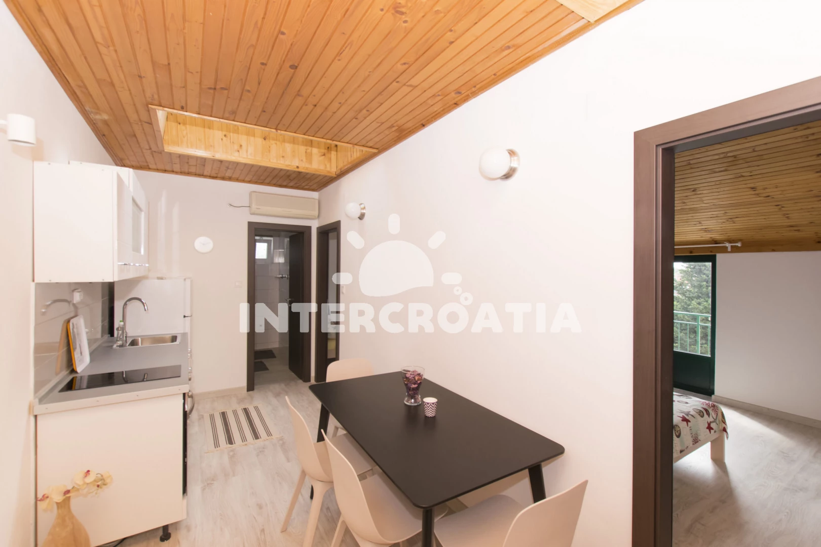 Vzdálenosti: Moře 200 m, pláž 200 m (oblázková a betonové desky), směnárna 150 m, lékárna 150 m, veřejná doprava 150 m, supermarket 150 m, ambulance 150 m, čerpací stanice 200 m, restaurace 200 m, bar 200 m, pošta 200 m, banka 200 m, centrum 250 m, mini golf 400 m, tenisové kurty 400 m, půjčovna kol 400 m, půjčovna motorových člunů 400 m, potápění 400 m, diskotéka 900 m, trajekt (Šibenik) 11,9 km, muzeum 12 km, letiště (Split) 80 km,