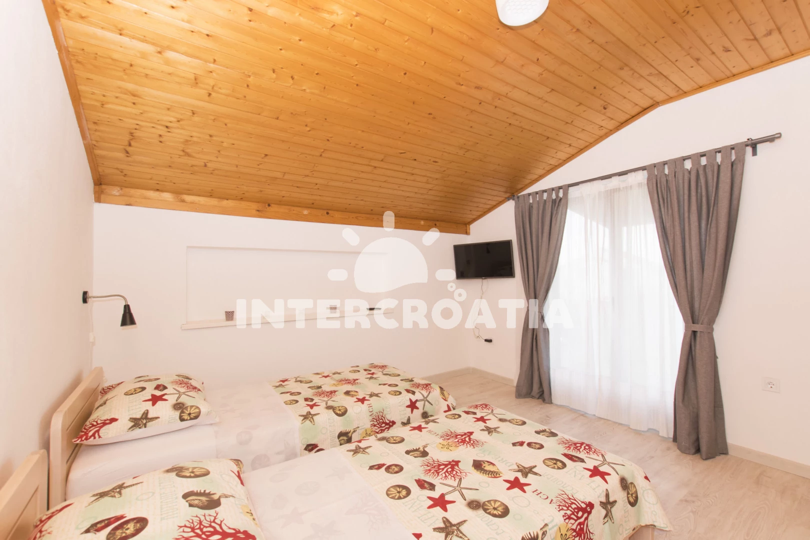 Apartmán se nachází 200 m od moře a pláže. Pláž je oblázková a betonové desky. U objektu je k dispozici společná zahrada s posezením a grilem.