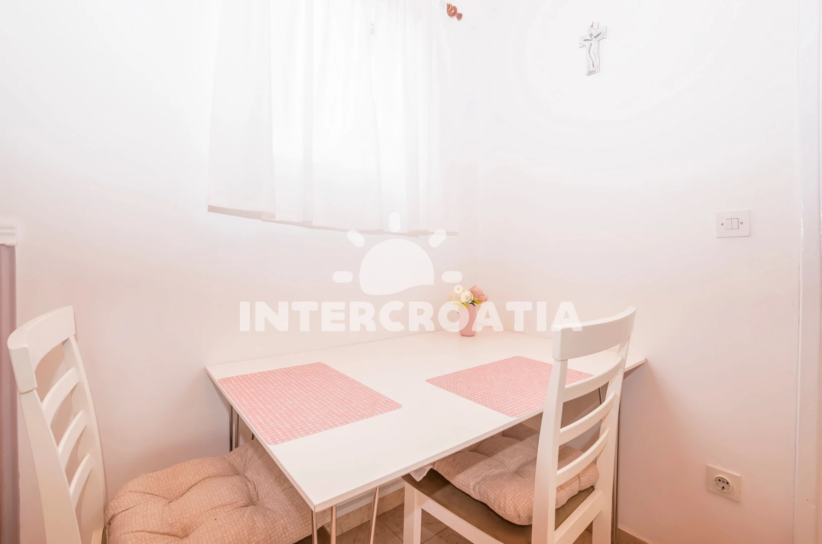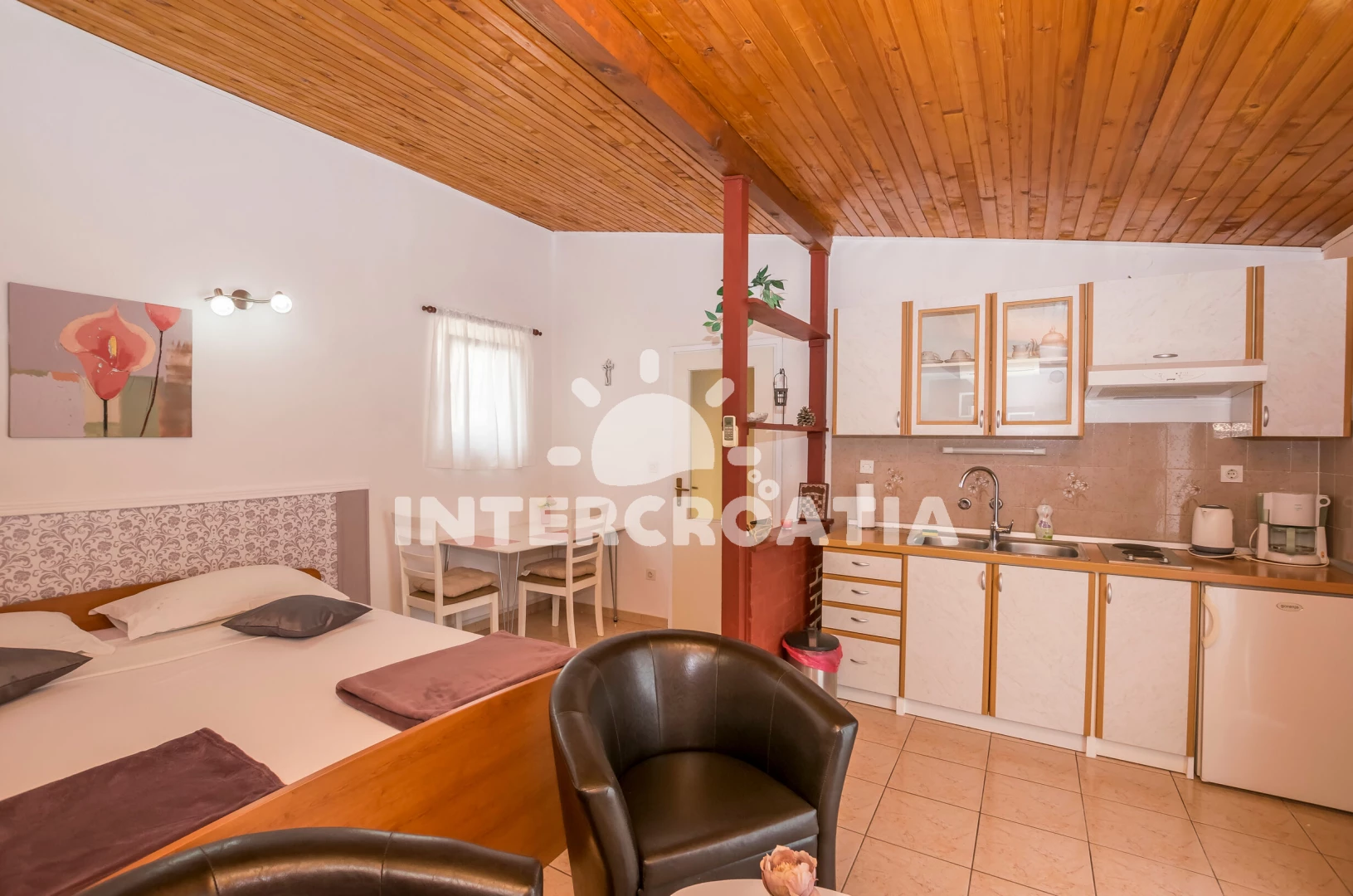 Apartmán se nachází 700 m od moře a pláže. Pláž je skalnatá, oblázková, větší kamení a betonové desky. U objektu je k dispozici společná zahrada s posezením a grilem.