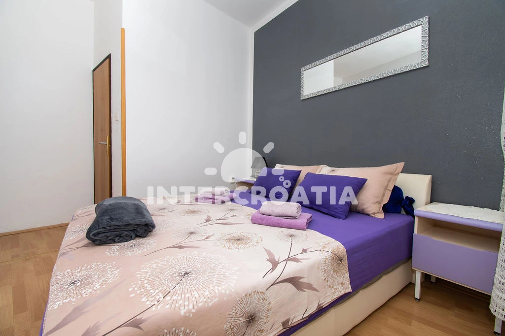 Vzdálenosti: Moře 50 m, pláž 80 m (oblázková a betonové desky), centrum 50 m, restaurace 50 m, bar 80 m, supermarket 500 m, směnárna 500 m, pošta 500 m, lékárna 600 m, ambulance 600 m, marina 700 m, park Plitvice 25 km, letiště (Zadar) 65,0 km, trajekt (Split) 85 km,