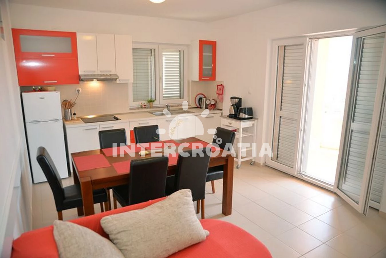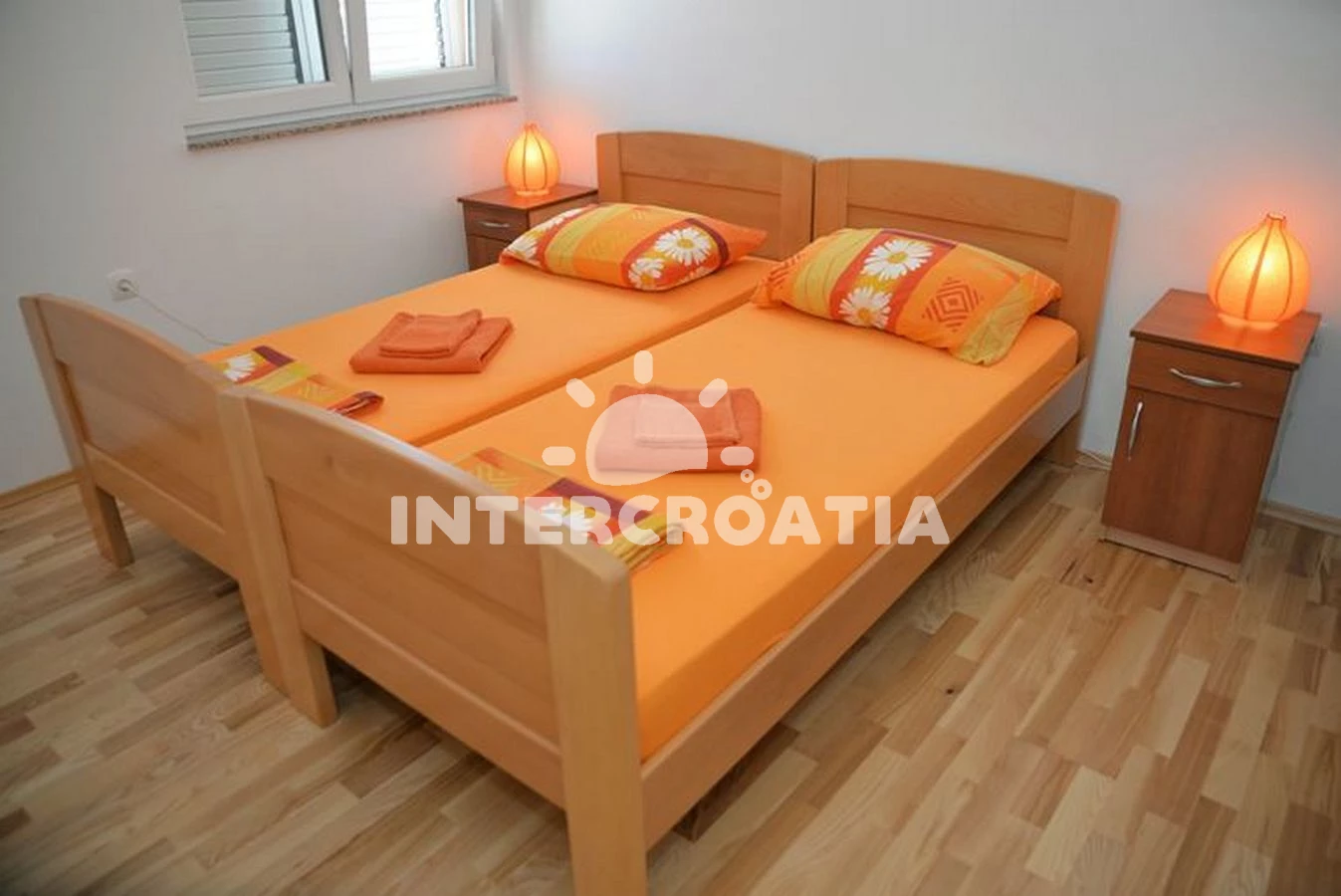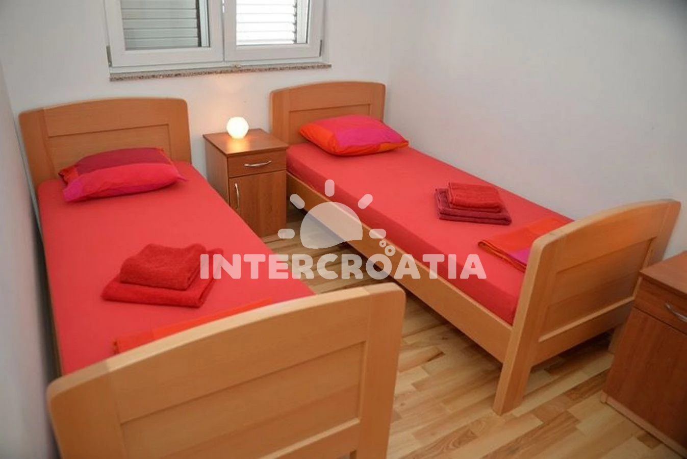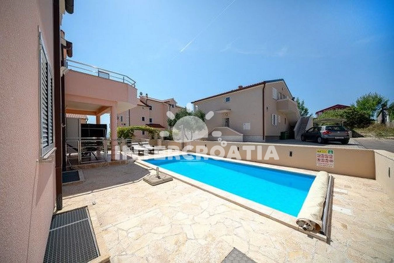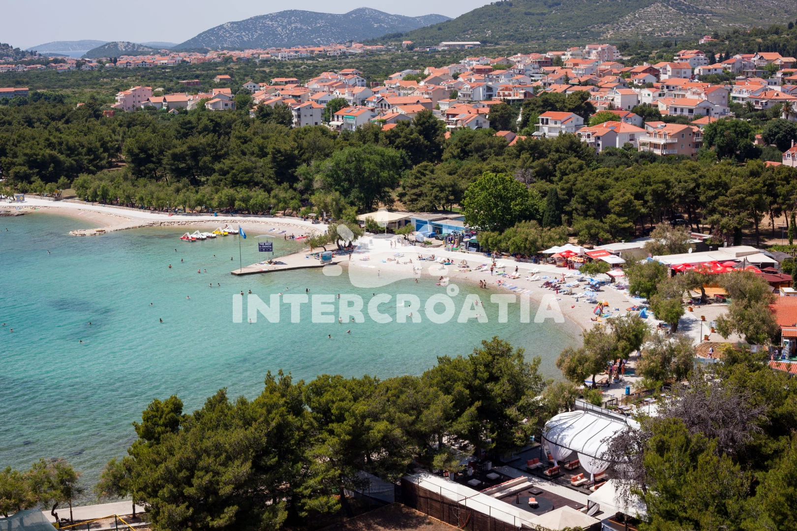Vzdálenosti: Moře 800 m, pláž 900 m (písčitá a oblázková), veřejná doprava 300 m, mini golf 500 m, diskotéka 500 m, bar 600 m, supermarket 700 m, směnárna 700 m, restaurace 700 m, lékárna 700 m, centrum 800 m, potápění 800 m, půjčovna motorových člunů 900 m, ambulance 900 m, marina 900 m, banka 900 m, pošta 900 m, čerpací stanice 1 km, tenisové kurty 1 km, trajekt (Šibenik) 12 km, letiště (Zadar) 50,0 km,