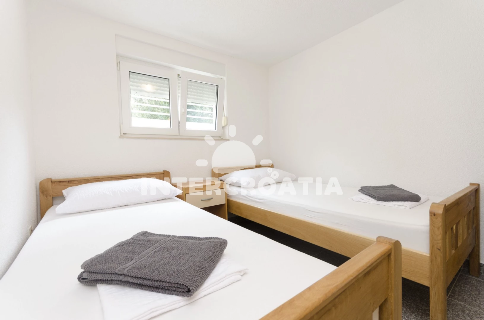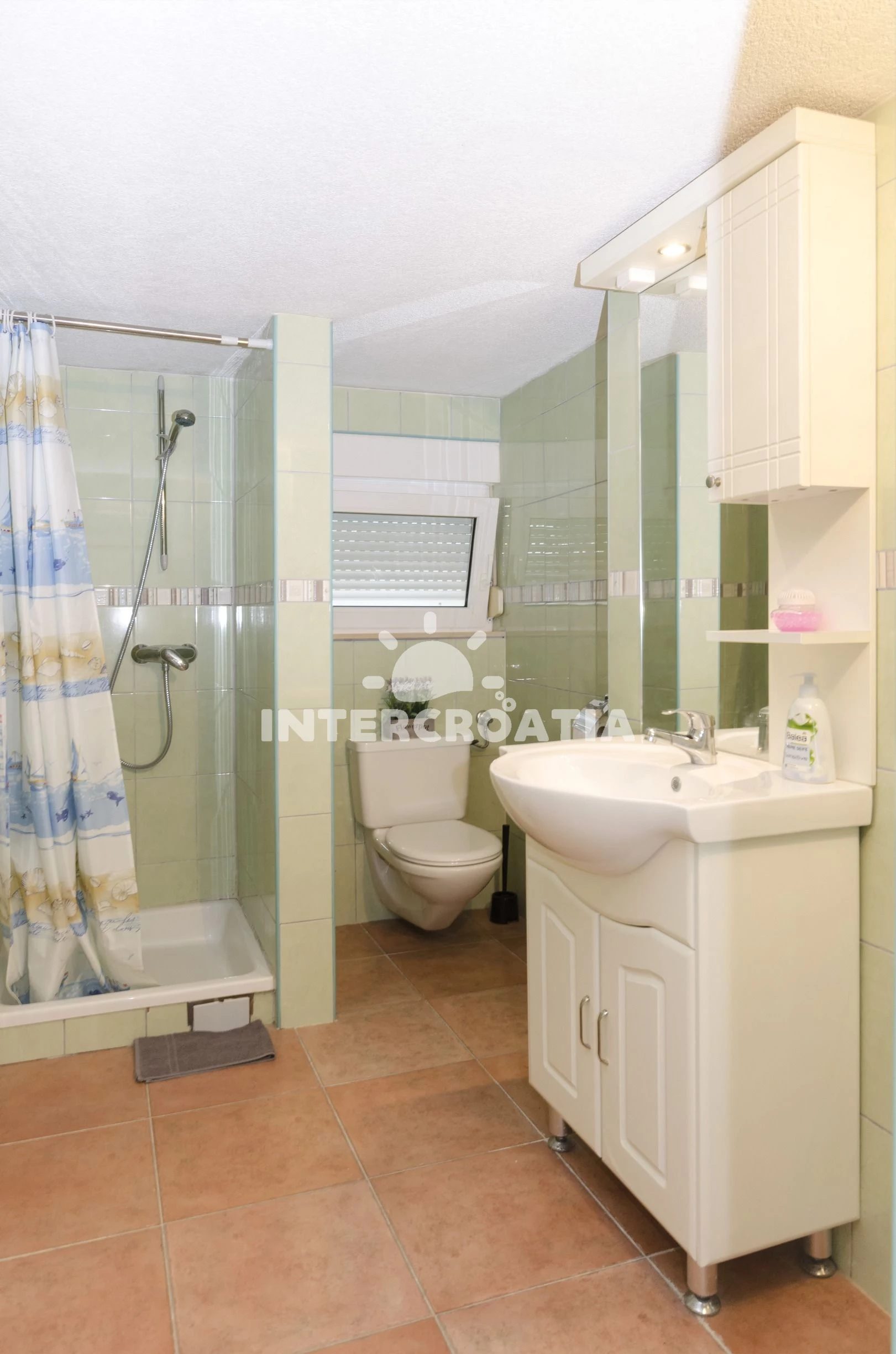 Vzdálenosti: Moře 730 m, pláž 900 m (oblázková a betonové desky), supermarket 200 m, restaurace 500 m, marina 750 m, bar 800 m, směnárna 850 m, lékárna 850 m, banka 850 m, centrum 950 m, trajekt (Šibenik) 15 km, park Plitvice 25 km, letiště (Zadar) 65 km,