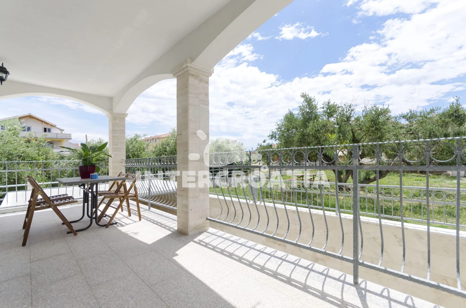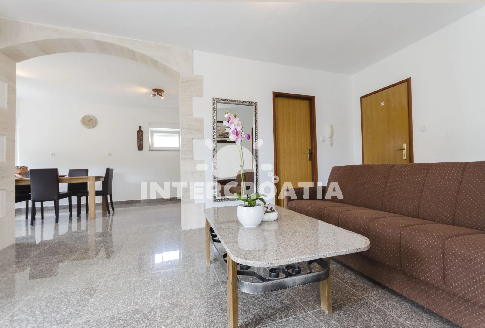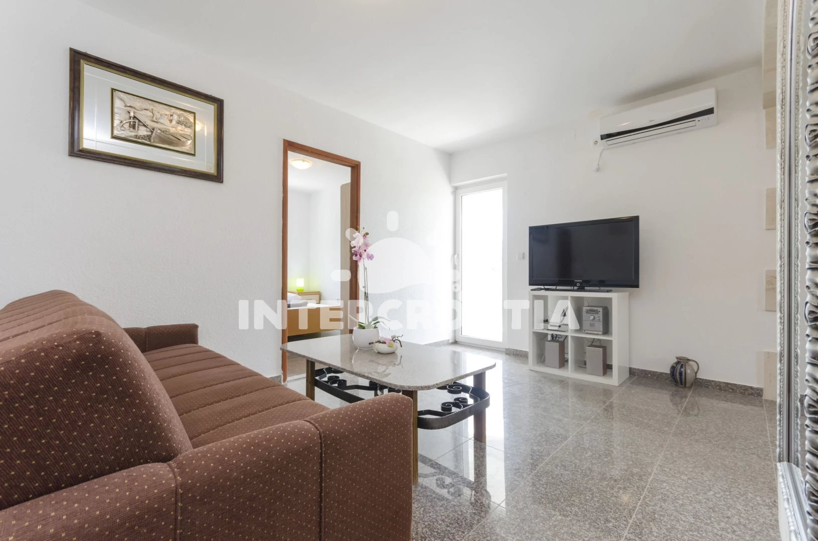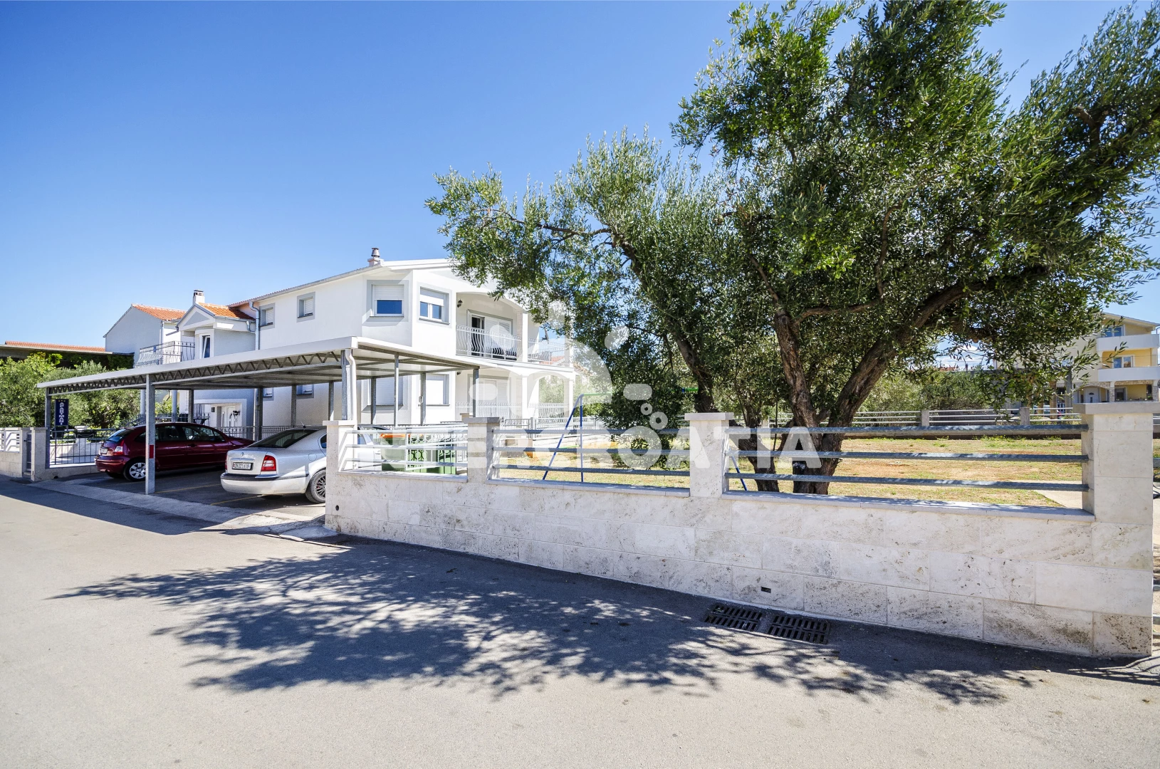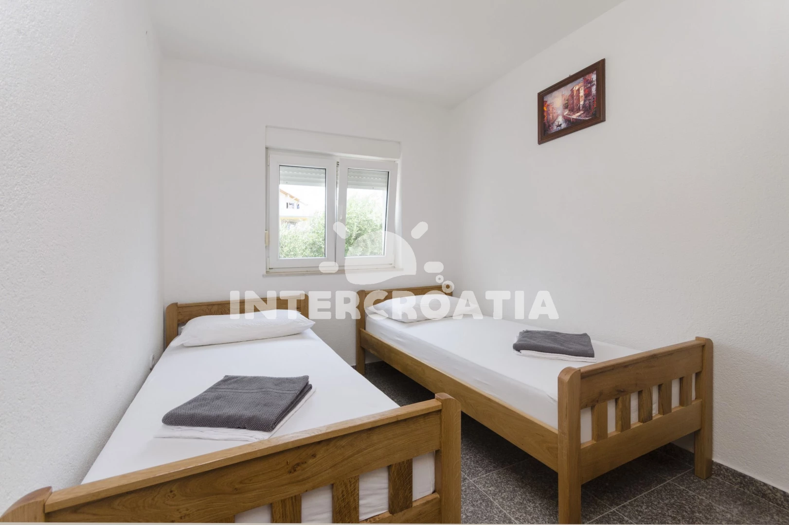 Vzdálenosti: Moře 730 m, pláž 900 m (oblázková a betonové desky), supermarket 200 m, restaurace 500 m, marina 750 m, bar 800 m, směnárna 850 m, lékárna 850 m, banka 850 m, centrum 950 m, trajekt (Šibenik) 15 km, park Plitvice 25 km, letiště (Zadar) 65 km,