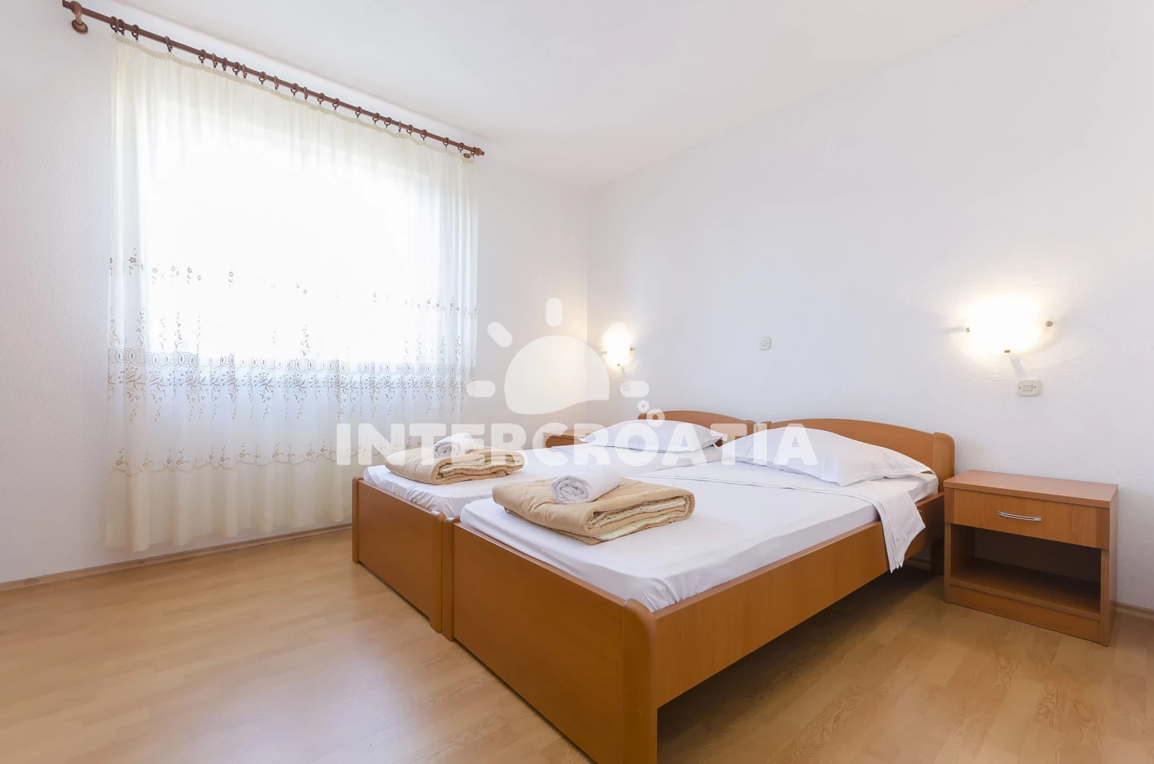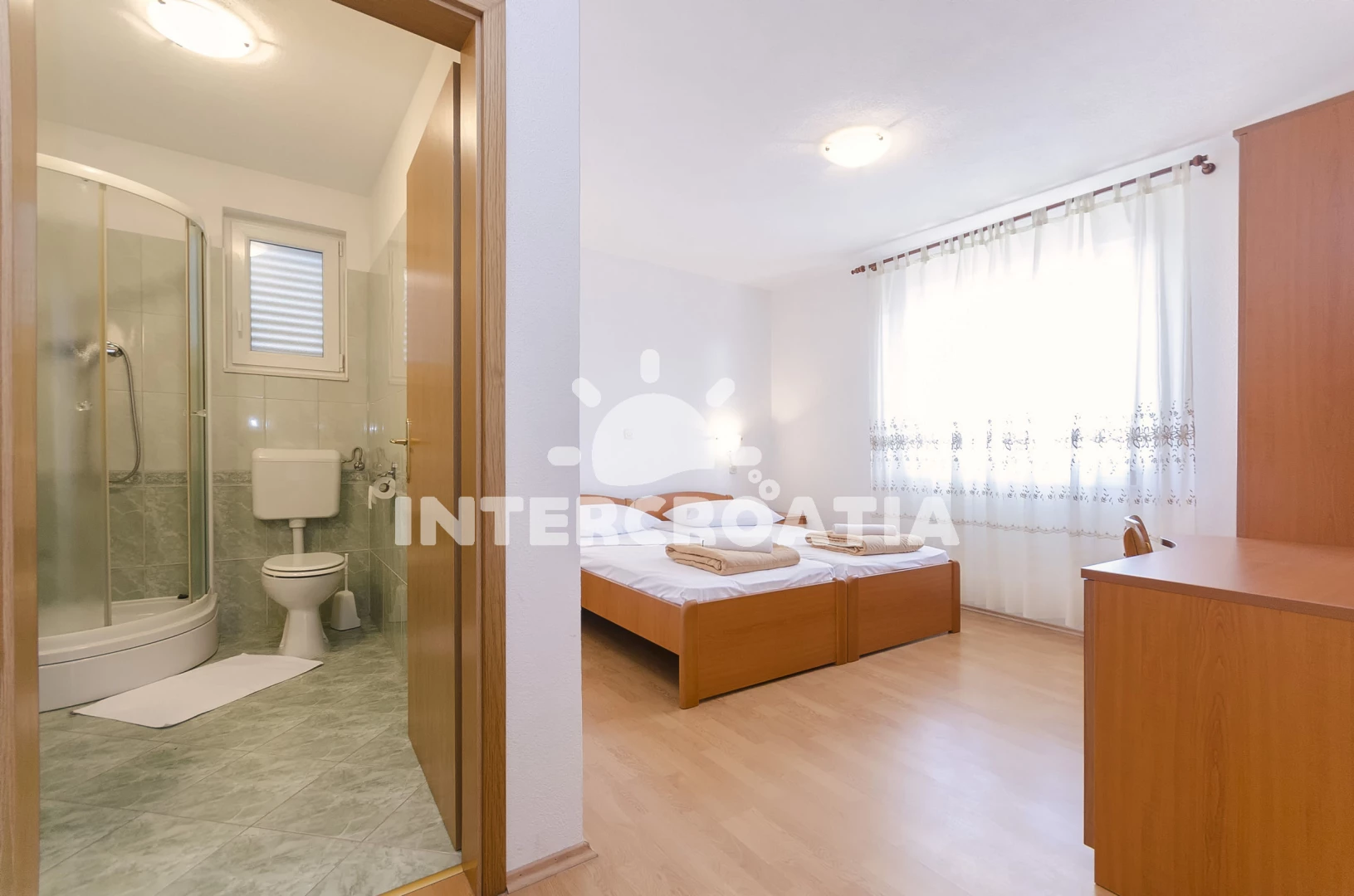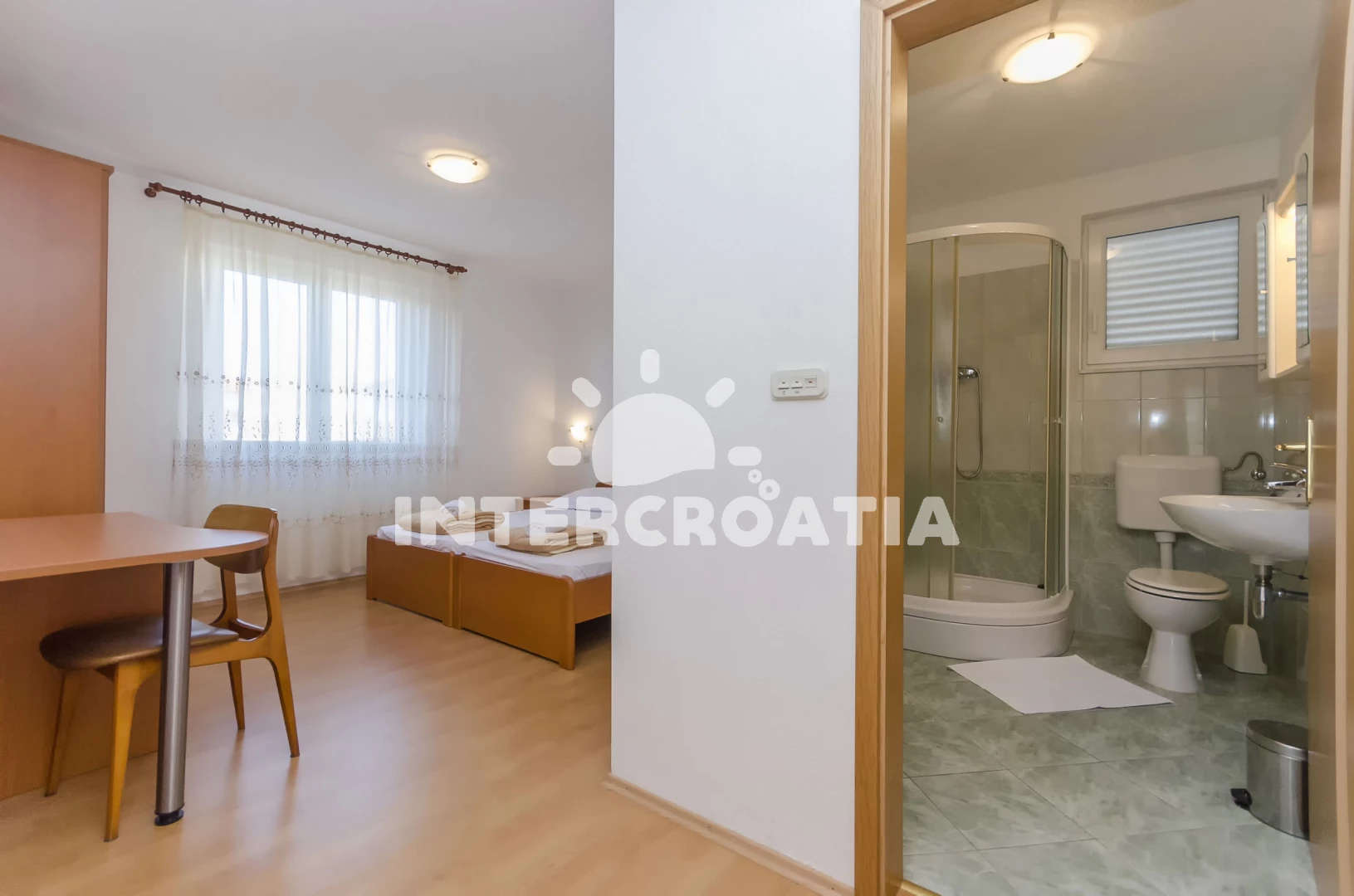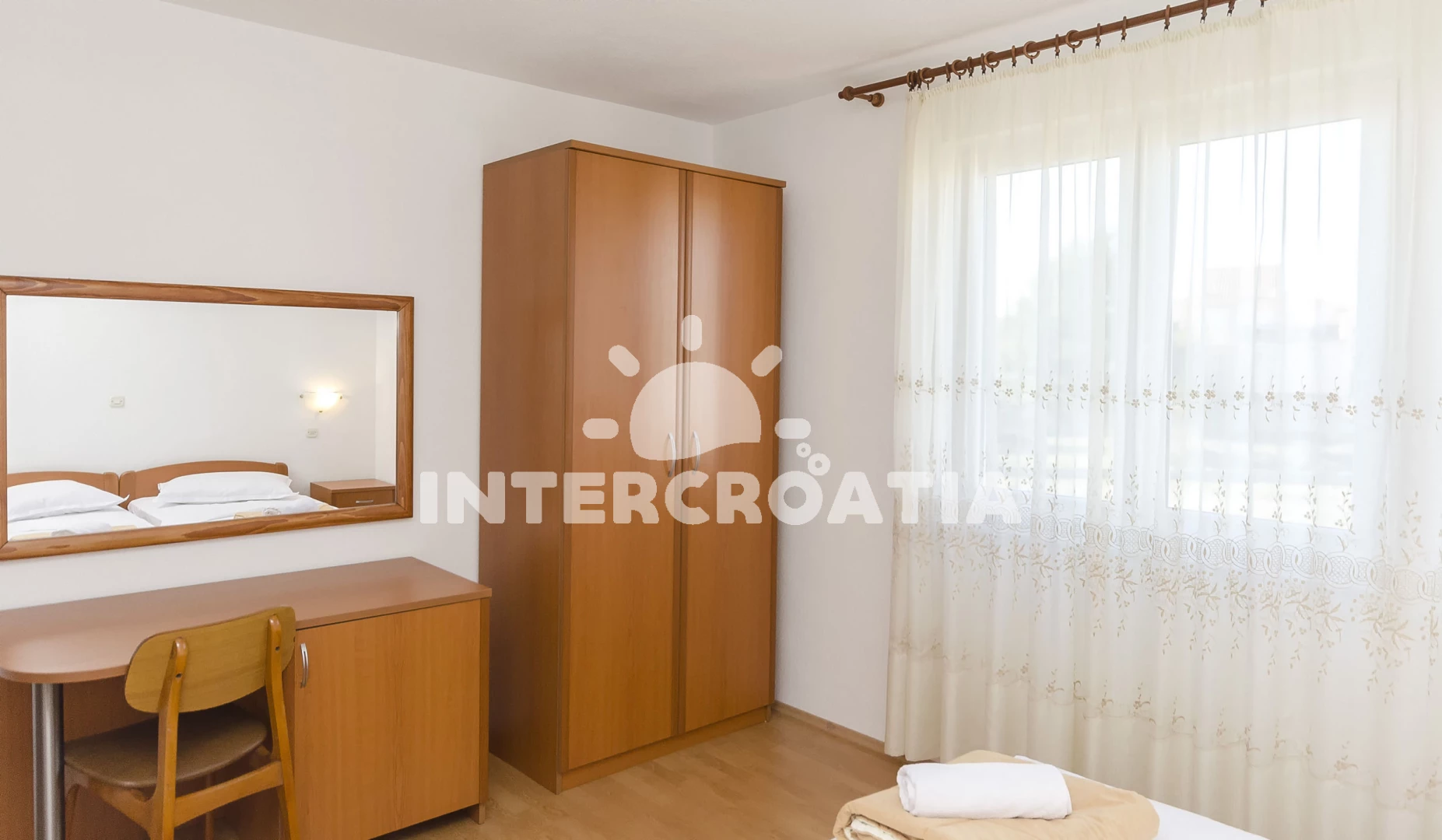 Vzdálenosti: Moře 700 m, pláž 750 m (oblázková a betonové desky), restaurace 160 m, supermarket 300 m, čerpací stanice 300 m, směnárna 300 m, veřejná doprava 300 m, lékárna 950 m, centrum 950 m, ambulance 950 m, park Plitvice 25 km, letiště (Zadar) 65 km,