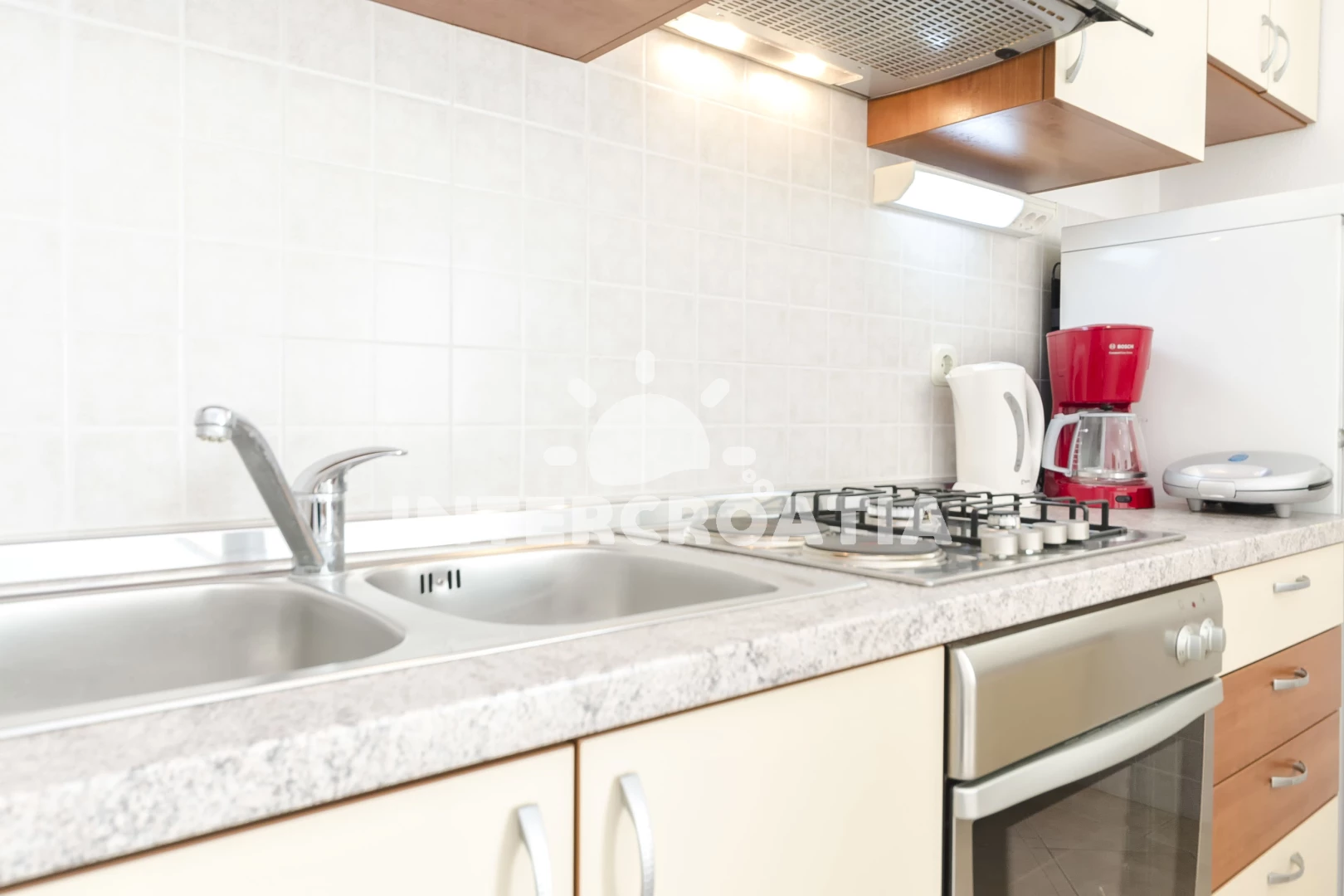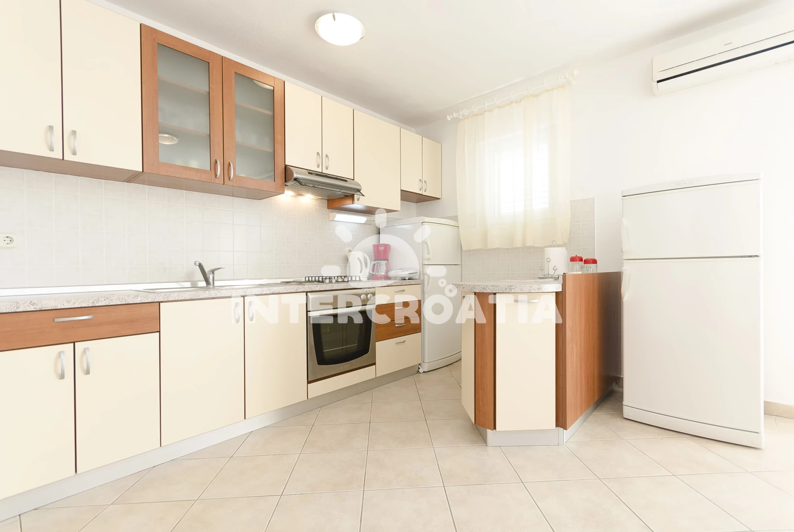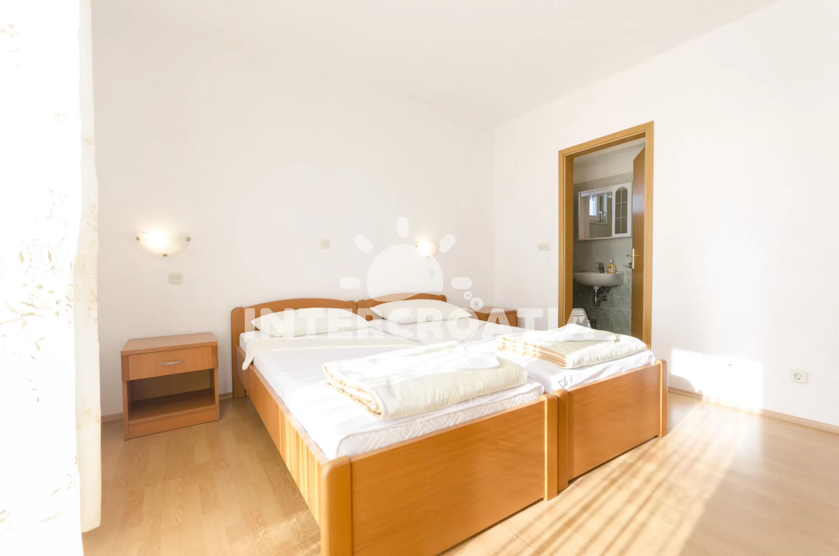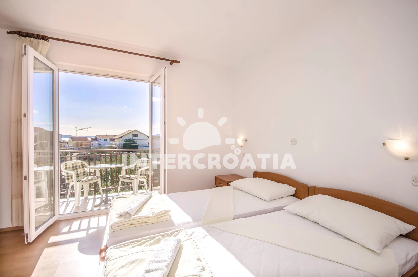 Vzdálenosti: Moře 700 m, pláž 750 m (oblázková a betonové desky), restaurace 160 m, supermarket 300 m, čerpací stanice 300 m, směnárna 300 m, veřejná doprava 300 m, lékárna 950 m, centrum 950 m, ambulance 950 m, park Plitvice 25 km, letiště (Zadar) 65 km,