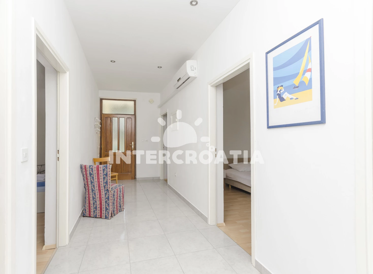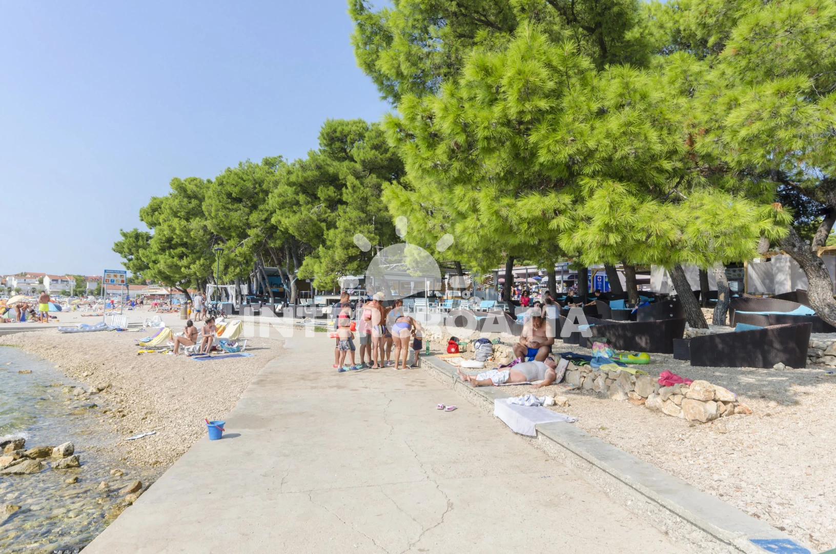 Vzdálenosti: Moře 400 m, pláž 500 m (oblázková a betonové desky), čerpací stanice 80 m, supermarket 100 m, bar 150 m, potápění 400 m, půjčovna motorových člunů 400 m, směnárna 400 m, restaurace 500 m, půjčovna kol 500 m, ambulance 600 m, marina 600 m, centrum 600 m, lékárna 600 m, pošta 700 m, diskotéka 700 m, tenisové kurty 800 m, letiště (Zadar) 68 km, trajekt (Split) 98 km,