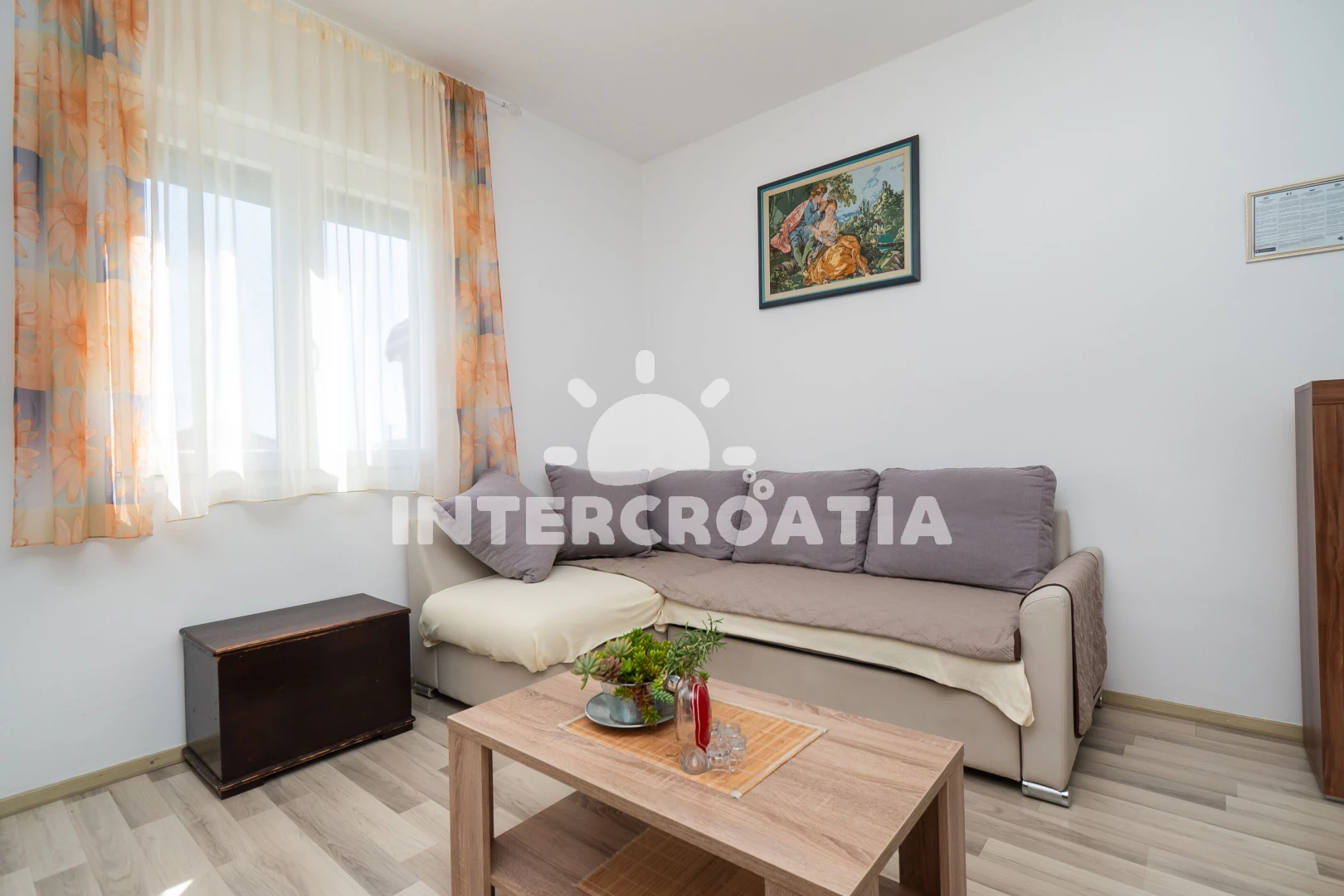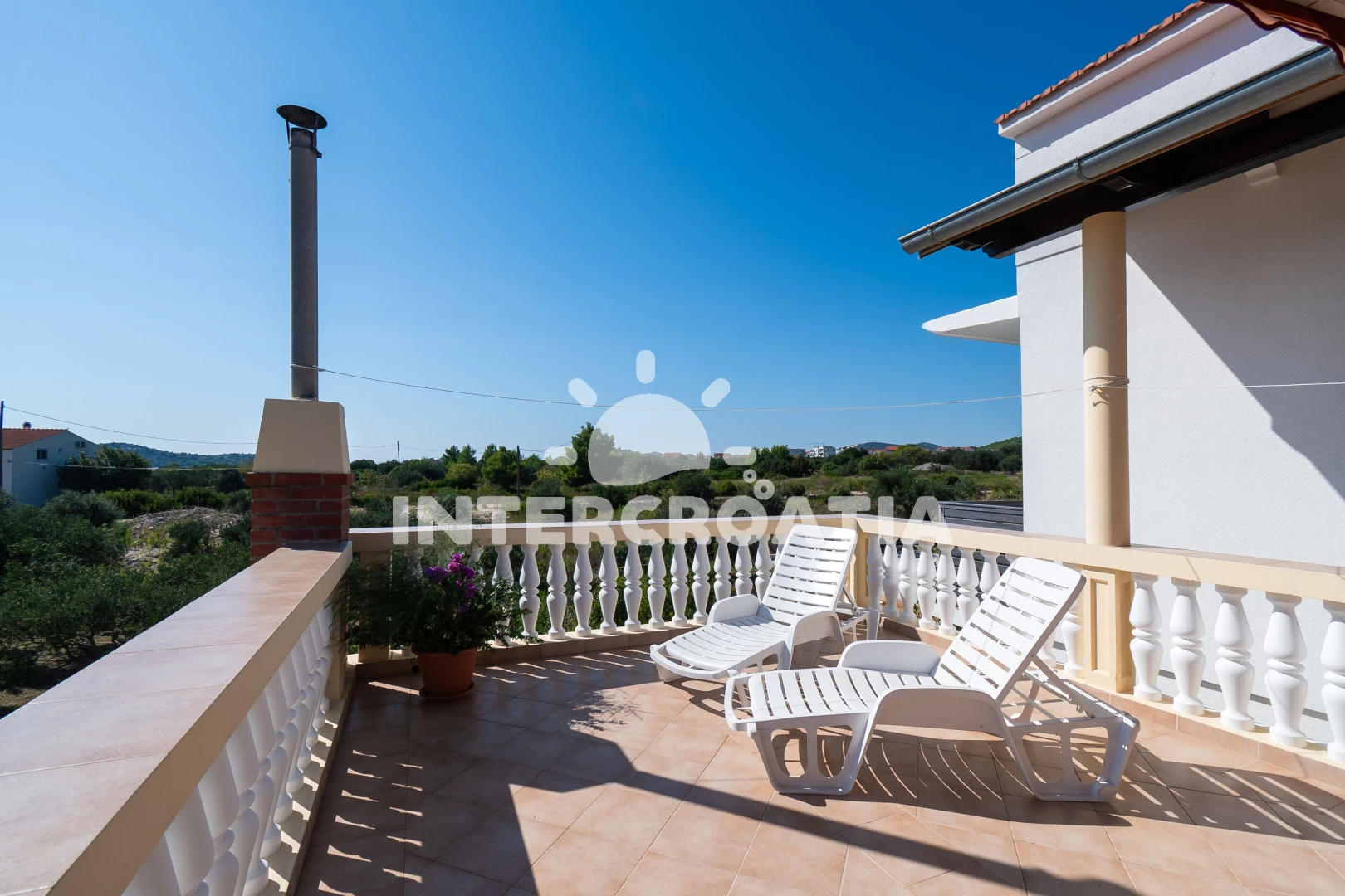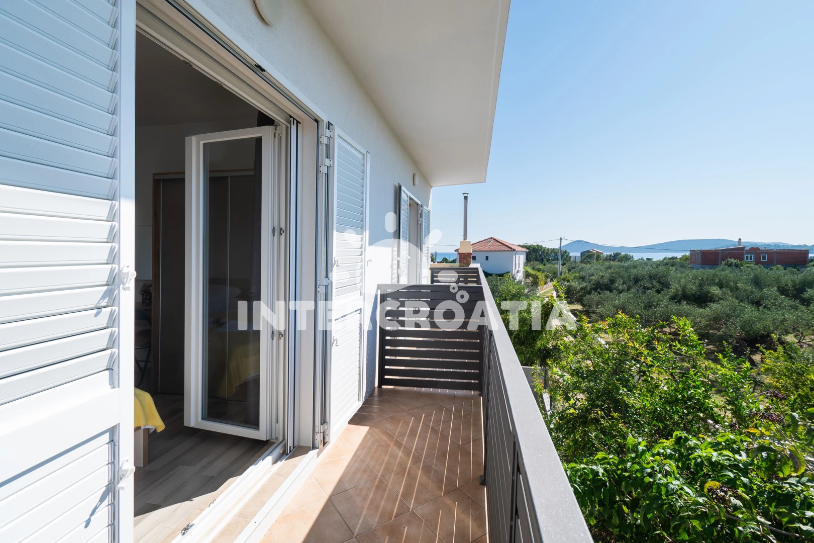Vzdálenosti: Moře 320 m, pláž 380 m (písčitá, oblázková a větší kamení), bar 500 m, supermarket 500 m, restaurace 550 m, půjčovna motorových člunů 600 m, směnárna 1 km, centrum 1,7 km, ambulance 2 km, lékárna 2 km, banka 2 km, marina 2 km, pošta 2 km, park Plitvice 23 km, letiště (Zadar) 68 km, trajekt 98 km,