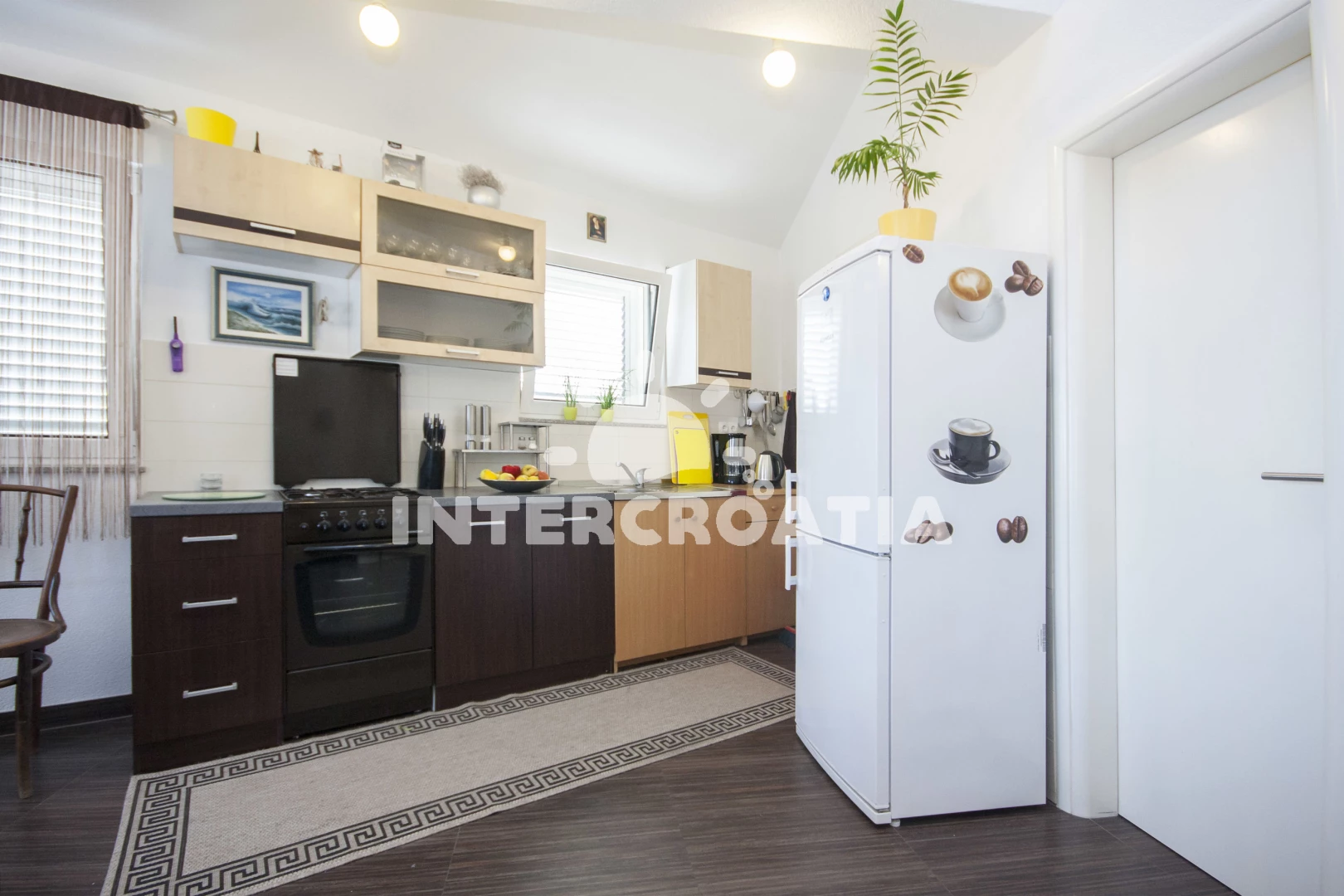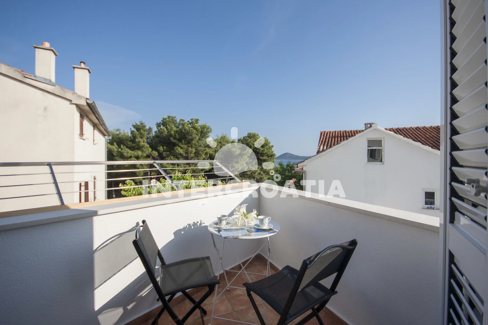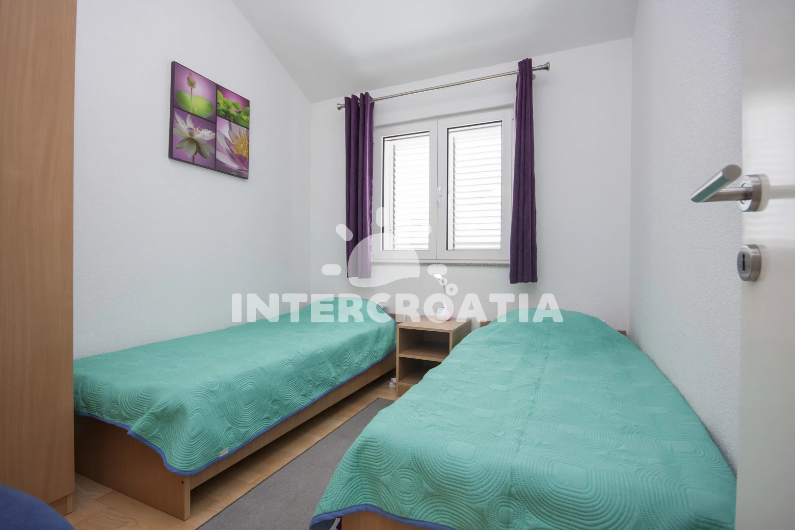 Vzdálenosti: supermarket 0 m, Moře 420 m, pláž 550 m (oblázková a betonové desky), centrum 500 m, bar 500 m, restaurace 500 m, lékárna 600 m, park Plitvice 25 km, letiště (Zadar) 65 km,