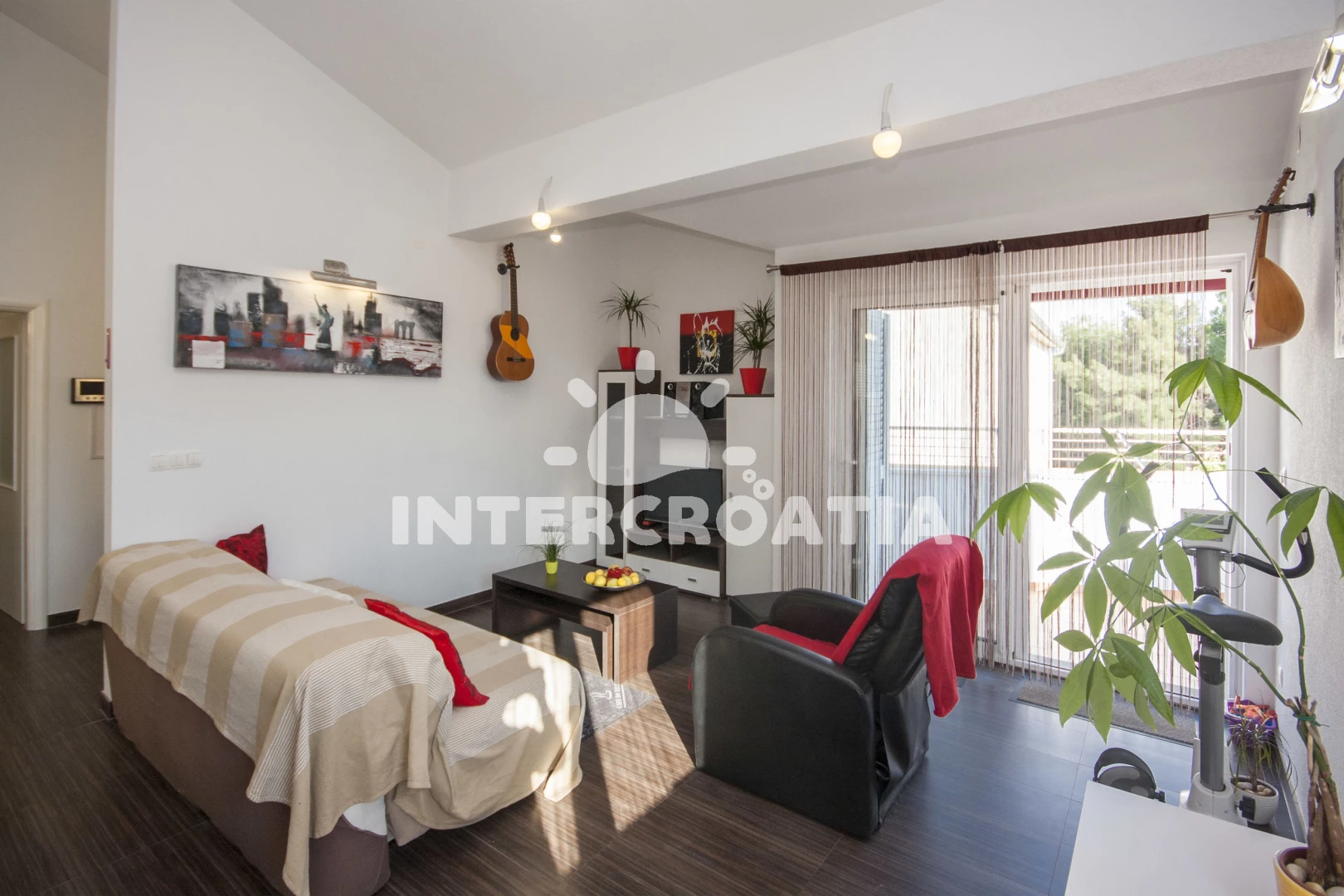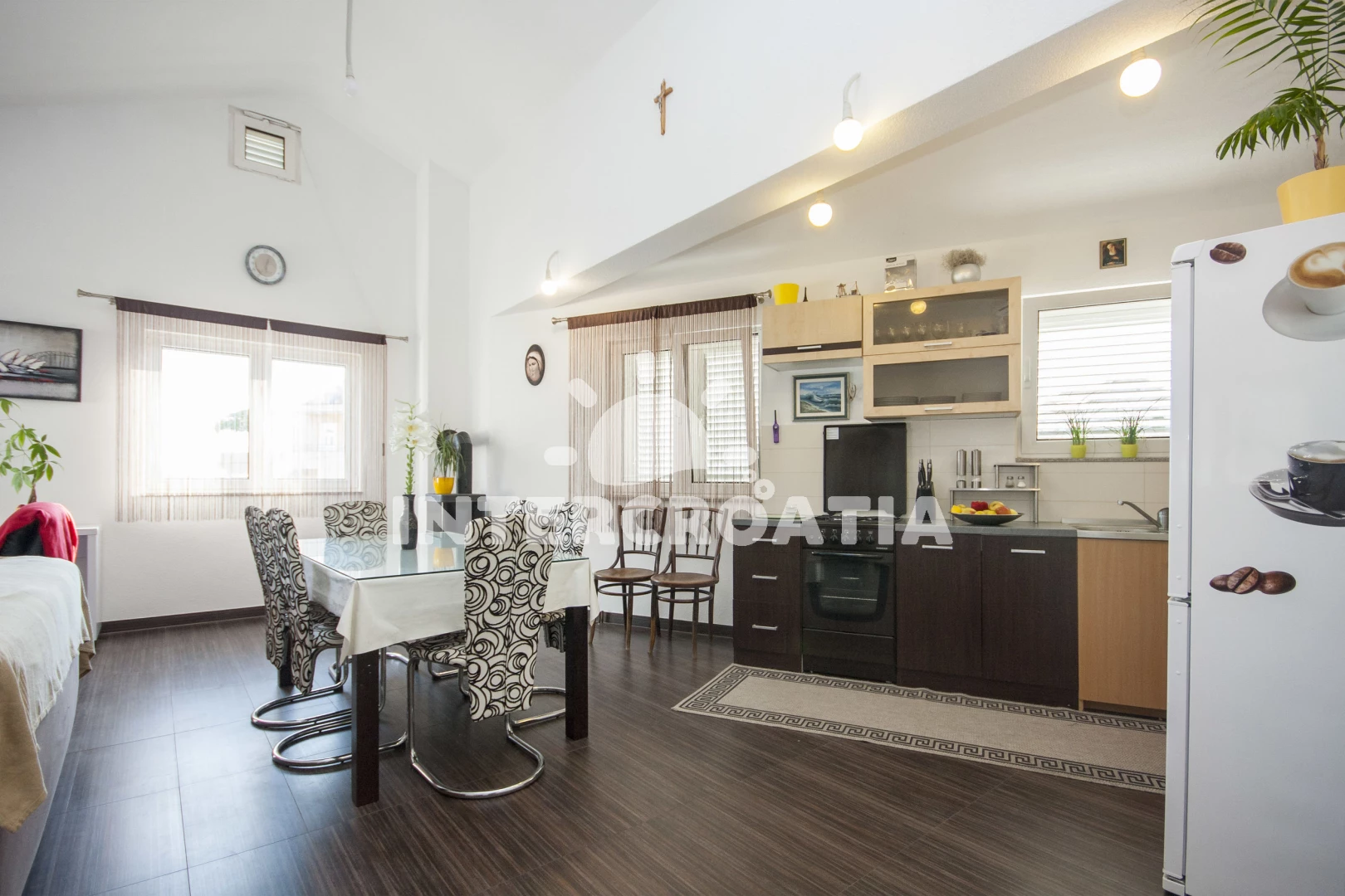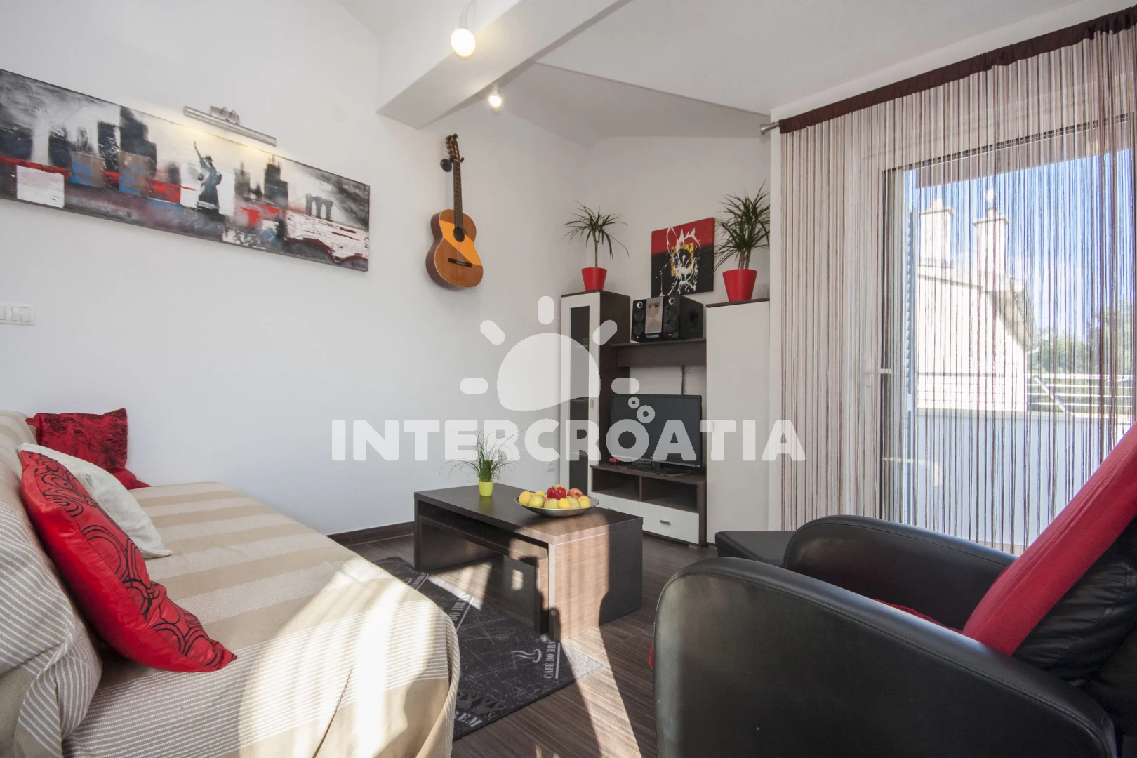 Vzdálenosti: supermarket 0 m, Moře 420 m, pláž 550 m (oblázková a betonové desky), centrum 500 m, bar 500 m, restaurace 500 m, lékárna 600 m, park Plitvice 25 km, letiště (Zadar) 65 km,
