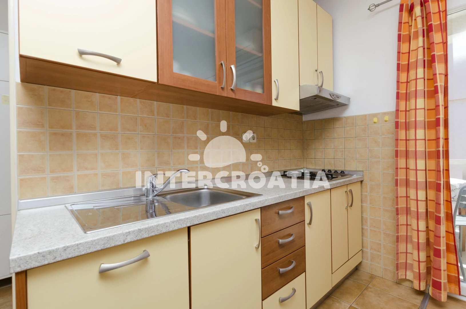 Apartmán se nachází 800 m od moře a pláže. Pláž je písčitá a oblázková.
