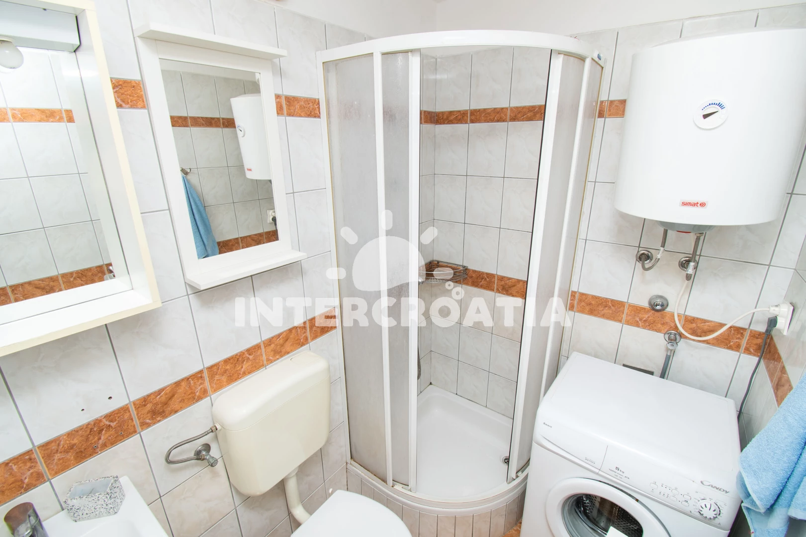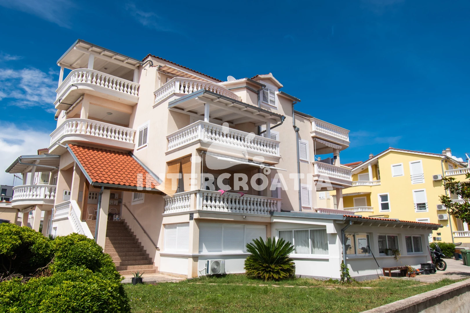 Vzdálenosti: Moře 400 m, pláž 450 m (oblázky), supermarket 100 m, bar 400 m, restaurace 400 m, centrum 1 km, lékárna 1,5 km, ambulance 1,5 km, směnárna 1,5 km, čerpací stanice 1,5 km, banka 1,5 km, pošta 1,5 km, marina 1,5 km, trajekt (Zadar) 50 km, letiště (Split) 64 km,
