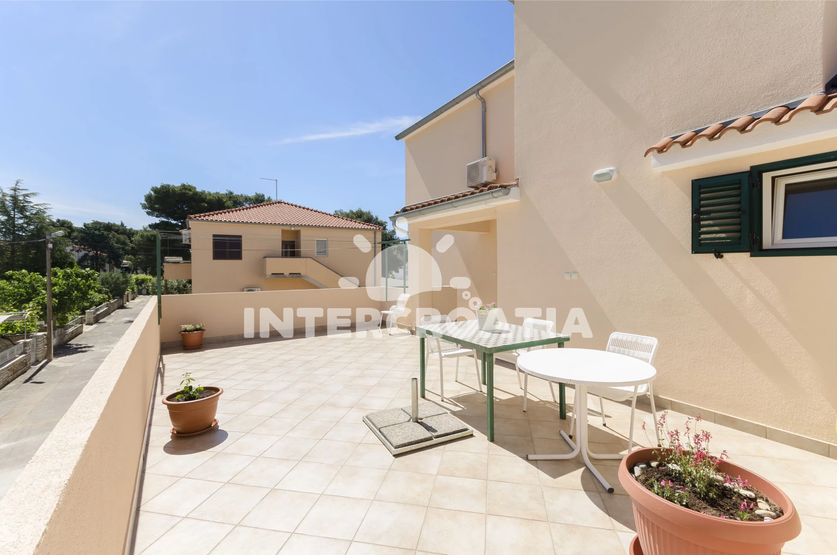 Vzdálenosti: Moře 250 m, pláž 350 m (oblázková a betonové desky), veřejná doprava 100 m, supermarket 100 m, bar 100 m, čerpací stanice 150 m, půjčovna kol 400 m, směnárna 400 m, restaurace 400 m, půjčovna motorových člunů 400 m, banka 500 m, lékárna 500 m, ambulance 500 m, centrum 600 m, pošta 800 m, park Plitvice 25 km, trajekt (Zadar) 65 km, letiště (Zadar) 65 km,