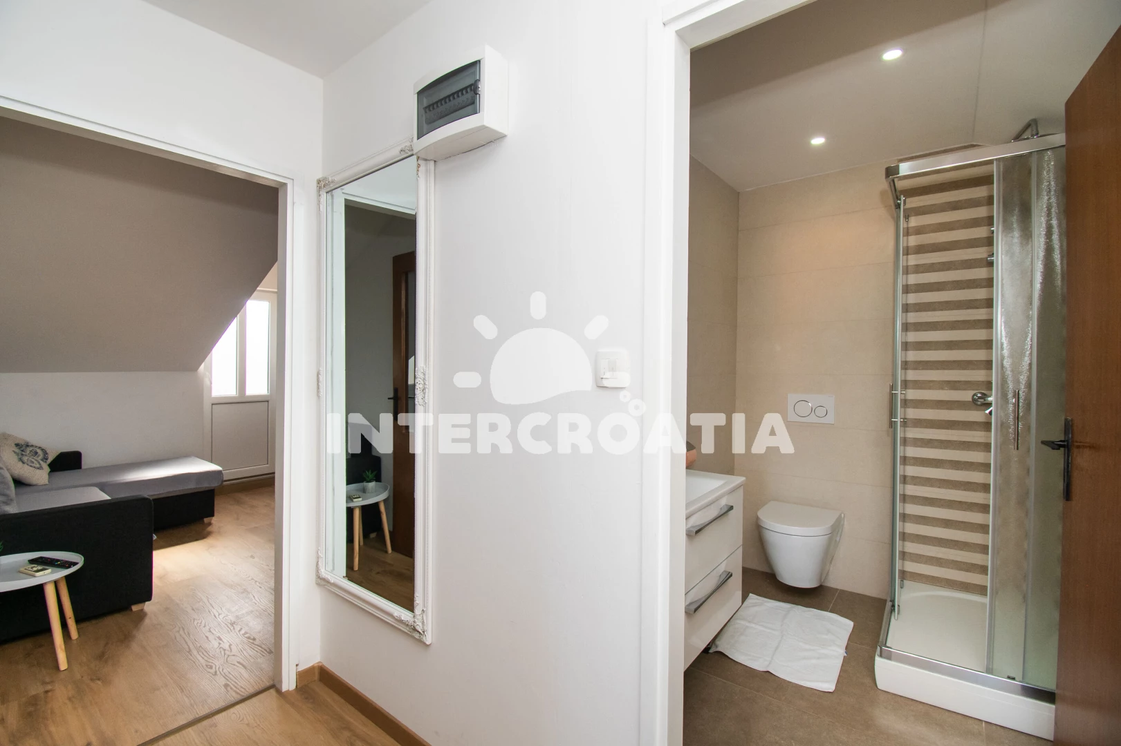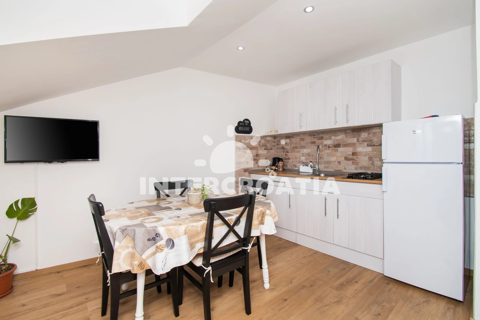 Vzdálenosti: Moře 300 m, pláž 550 m (oblázková a betonové desky), restaurace 150 m, supermarket 300 m, bar 300 m, centrum 400 m, ambulance 500 m, směnárna 500 m, veřejná doprava 500 m, pošta 500 m, lékárna 500 m, banka 500 m, park Plitvice 25 km, letiště (Zadar) 65 km,