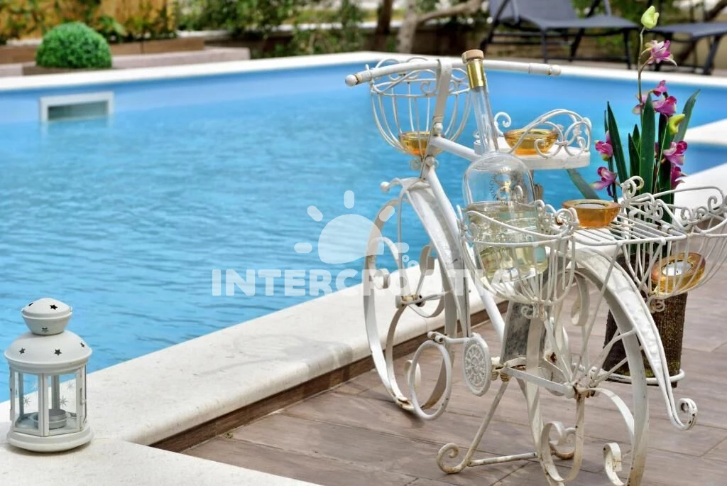 Apartmán se nachází 750 m od moře a pláže. Pláž je oblázková a betonové desky. Apartmán disponuje bazénem s lehátky pro ubytované hosty. K dispozici vířivka. U objektu je k dispozici společná zahrada s posezením a grilem.