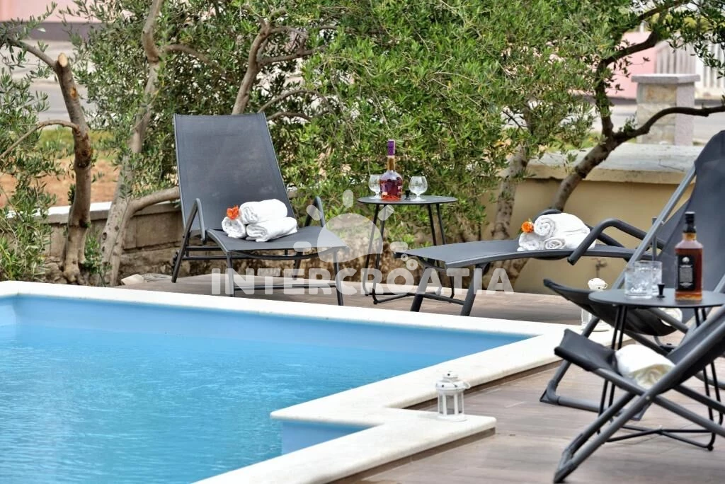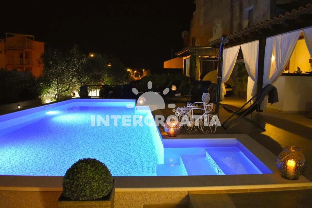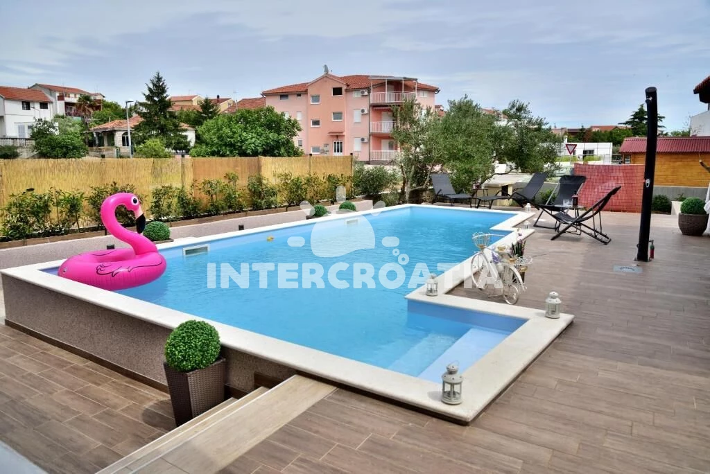 Vzdálenosti: Moře 380 m, pláž 750 m (oblázková a betonové desky), banka 350 m, centrum 350 m, bar 350 m, marina 380 m, pošta 400 m, restaurace 400 m, směnárna 400 m, diskotéka 500 m, veřejná doprava 500 m, supermarket 500 m, potápění 600 m, půjčovna motorových člunů 700 m, lékárna 800 m, ambulance 800 m, čerpací stanice 1 km, půjčovna kol 1,5 km, tenisové kurty 1,5 km, park Plitvice 23 km, letiště (Zadar) 69 km,