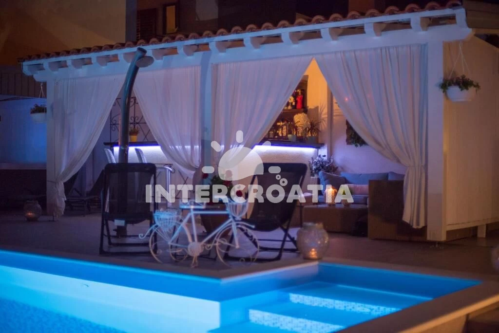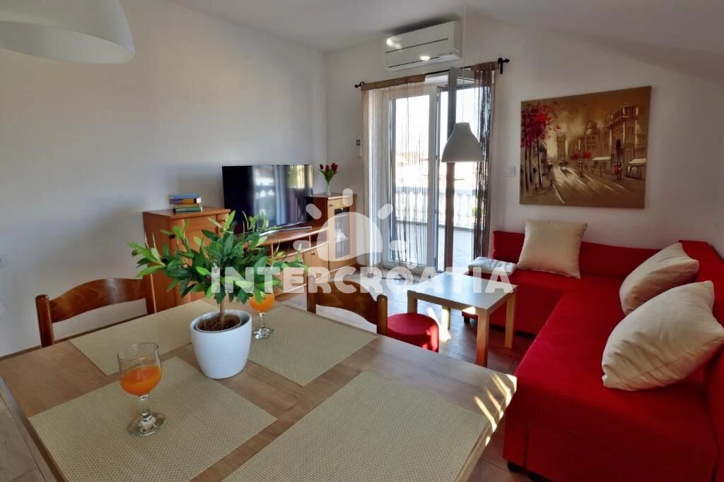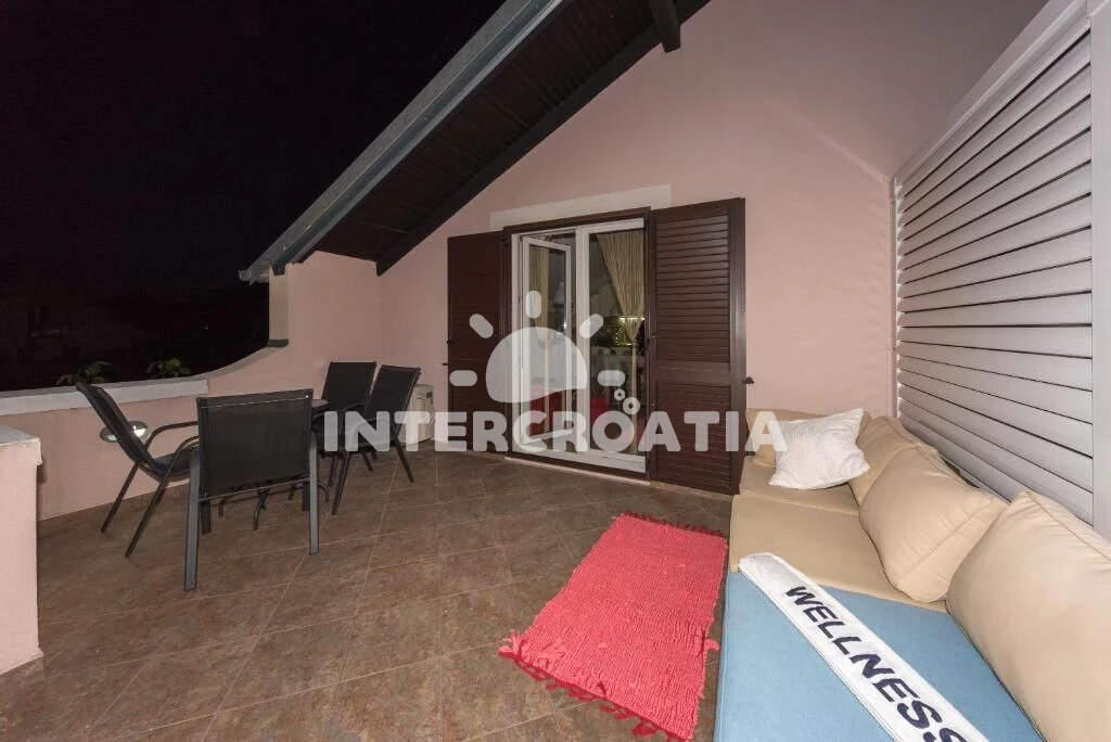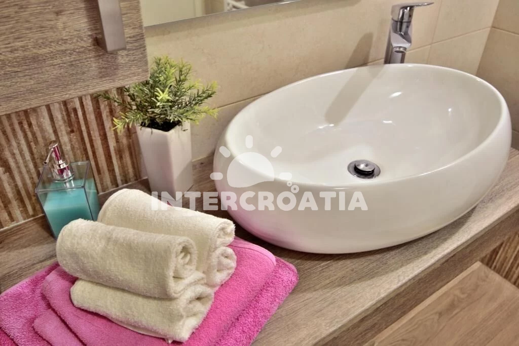 Vzdálenosti: Moře 380 m, pláž 750 m (oblázková a betonové desky), banka 350 m, centrum 350 m, bar 350 m, marina 380 m, pošta 400 m, restaurace 400 m, směnárna 400 m, diskotéka 500 m, veřejná doprava 500 m, supermarket 500 m, potápění 600 m, půjčovna motorových člunů 700 m, lékárna 800 m, ambulance 800 m, čerpací stanice 1 km, půjčovna kol 1,5 km, tenisové kurty 1,5 km, park Plitvice 23 km, letiště (Zadar) 69 km,